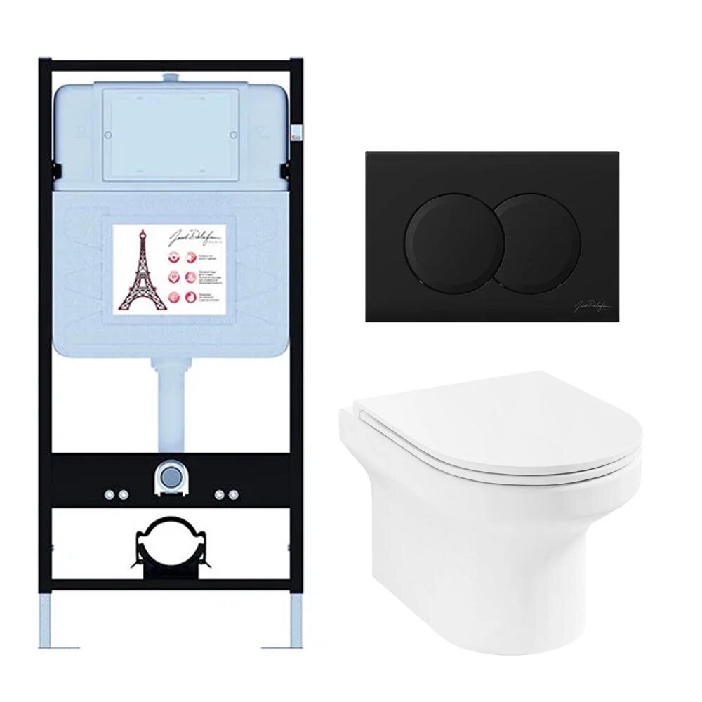 Комплект унитаза с инсталляцией Elite матовая, глубина унитаза 50см, черная, с микролифтом, безободковый, быстросъемное, Jacob Delafon