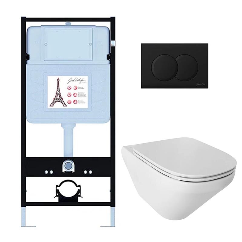 Modern Life, комплект унитаза с инсталляцией, глубина унитаза 54см, черная, с микролифтом, безободковый, быстросъемное, матовая, арт. E21775RU-BL, Jacob Delafon