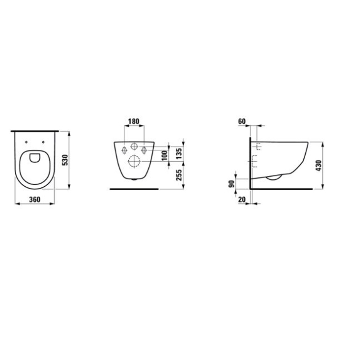 Комплект унитаза с инсталляцией Pro глубина унитаза 53см, клавиша хром глянец, безободковый, с микролифтом, Laufen