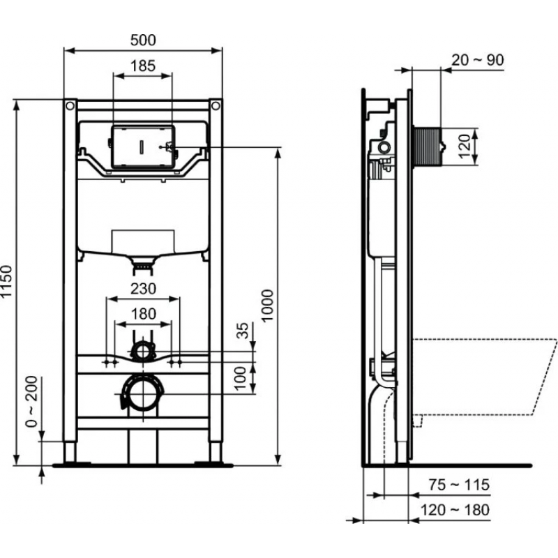 PROSYS R020467 120 M Встраиваемая инсталляция для монтажа подвесных унитазов.