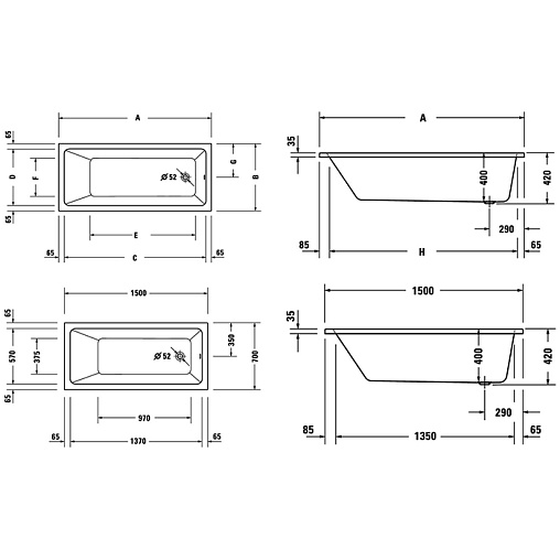 D-Neo 150х70см, ванна из материала durasolid, арт. 700487000000000, Duravit