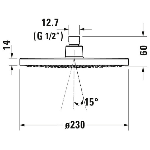 Лейка верхнего душа 23 см, round, хром / белый, без держателя, Duravit