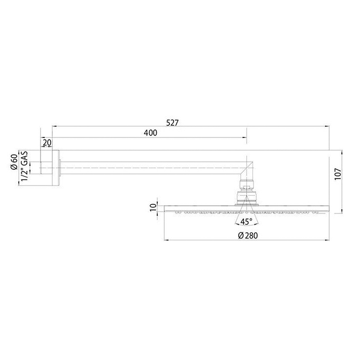 Размер лейки верхнего душа, см