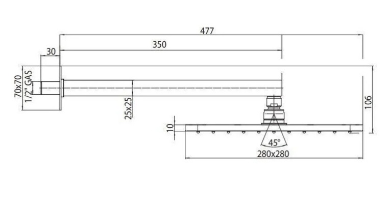 Размер лейки верхнего душа, см