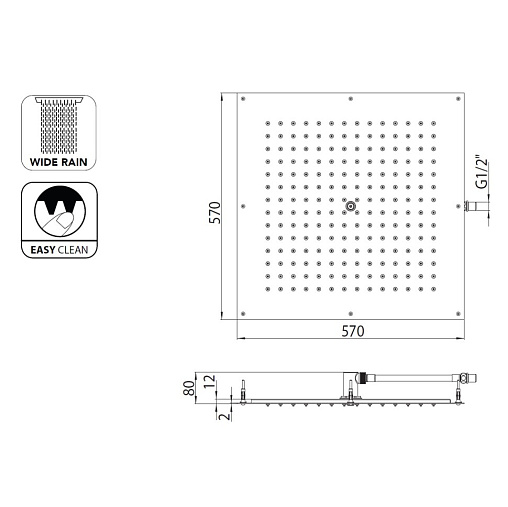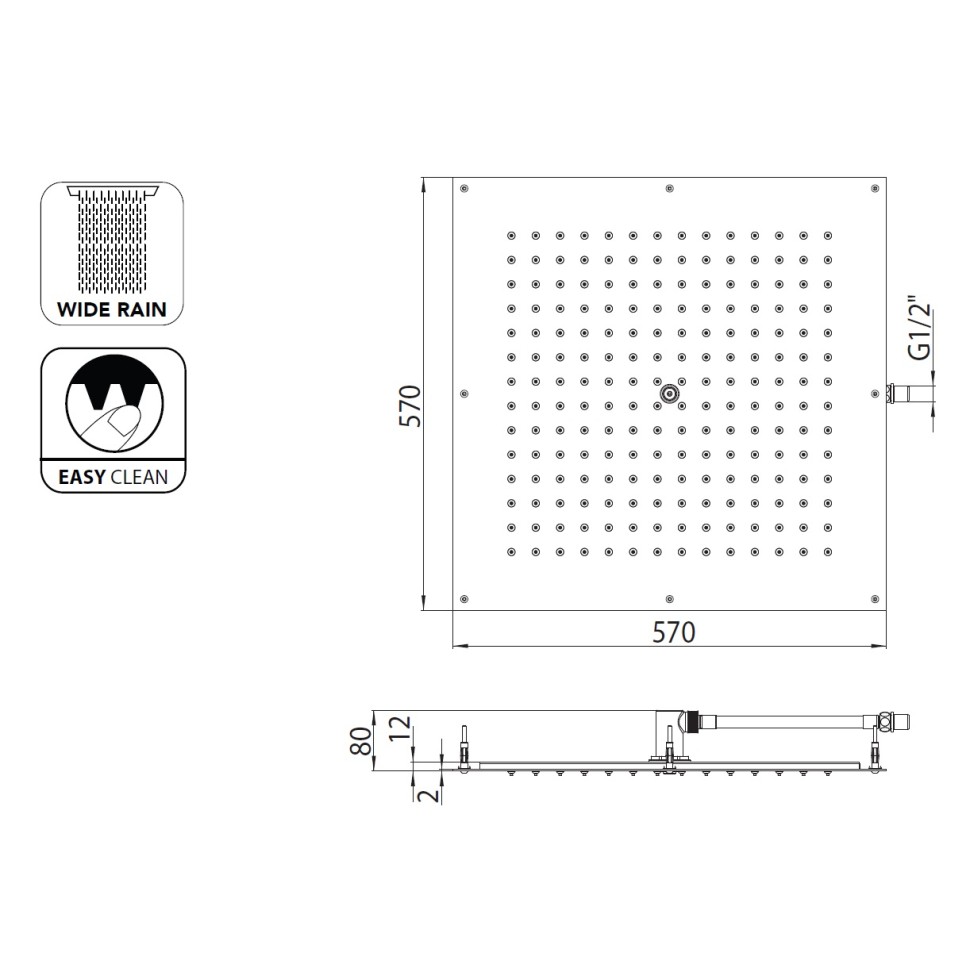 Лейка верхнего душа Dream easy clean (потолочный душ), 57 см, square, без держателя, Bossini