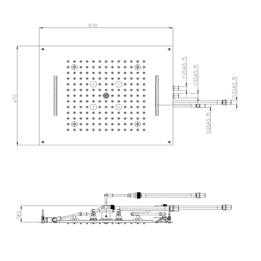 Dream, лейка верхнего душа, 57 см, square, стальной цвет, без держателя, с 4 режимами струи и хромотерапией (встраиваемая в потолок), арт. H38908.075,