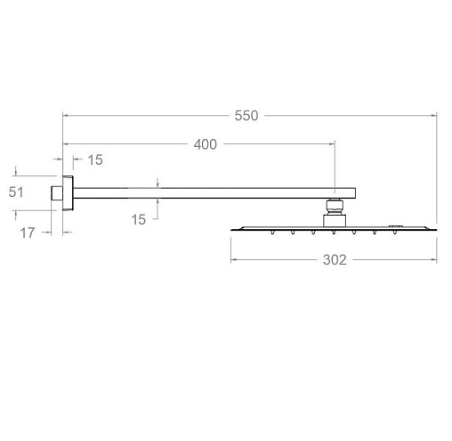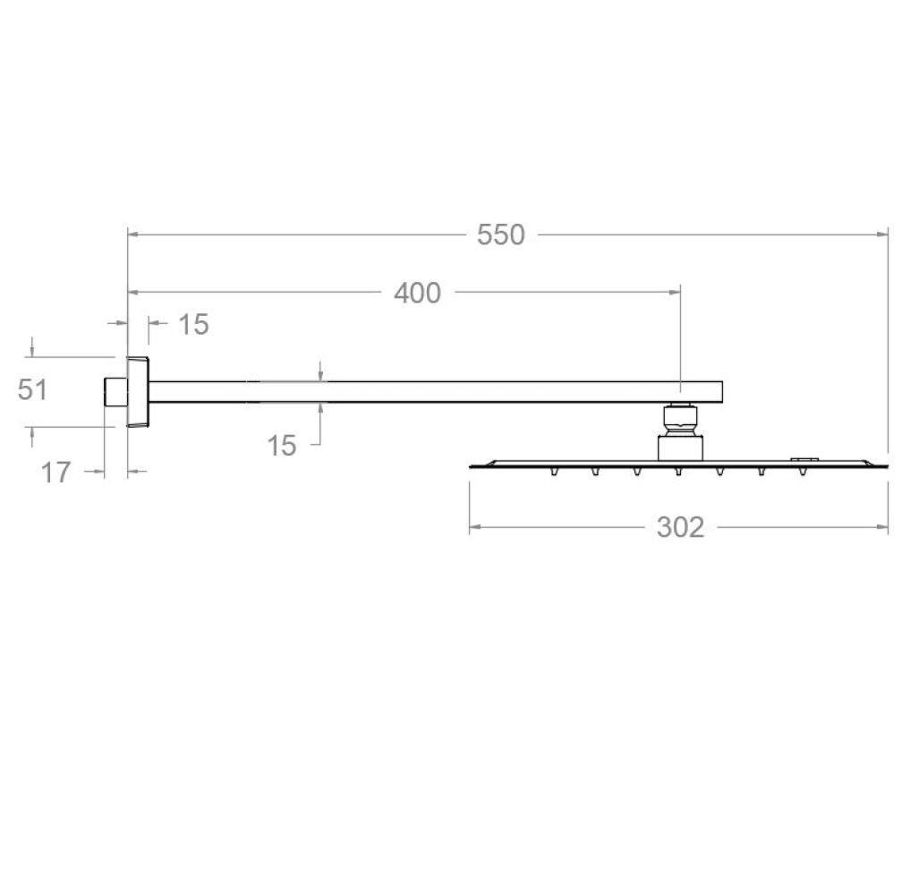 Лейка верхнего душа Hydrotherapy 30 см, square, медь, с держателем, Ramon Soler