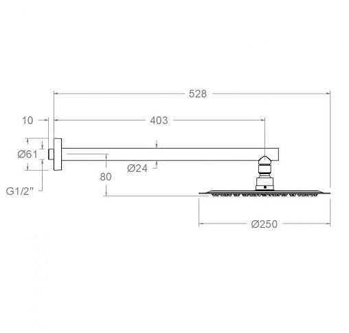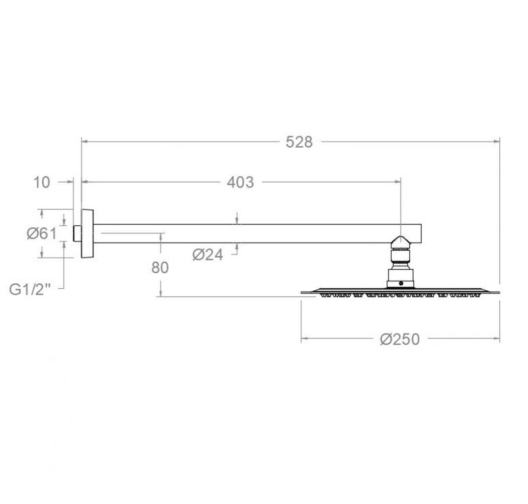 Hydrotherapy, лейка верхнего душа, 25 см, round, чёрный цвет, с держателем, матовая, арт. BH02RM250NM, Ramon Soler