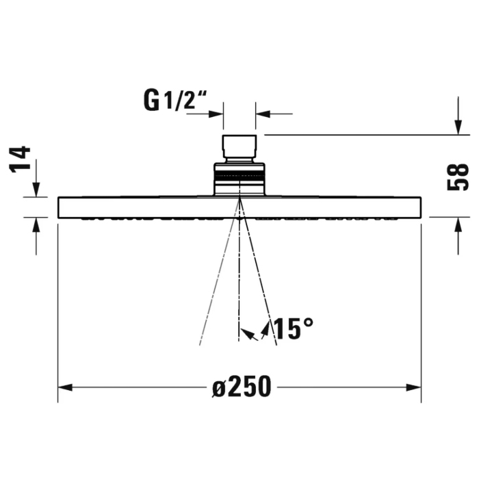 Лейка верхнего душа матовый, 25 см, round, чёрный цвет, без держателя, Duravit