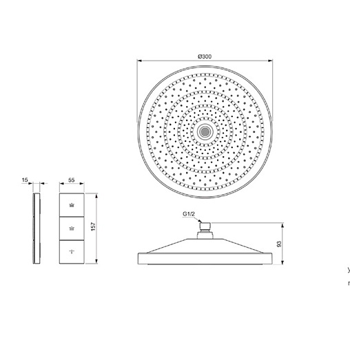 Лейка верхнего душа Solos 3 режима, silver storm, 30 см, round, стальной цвет, без держателя, Ideal Standard