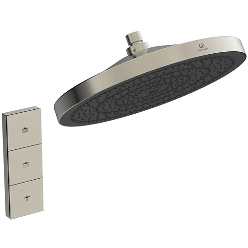 Solos, лейка верхнего душа, 30 см, round, стальной цвет, без держателя, 3 режима, silver storm, арт. A7889GN, Ideal Standard