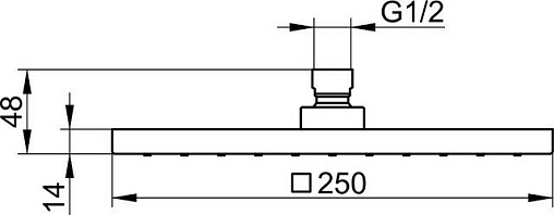 Лейка верхнего душа Universal матовый, 25 см, square, чёрный цвет, без держателя, Keuco