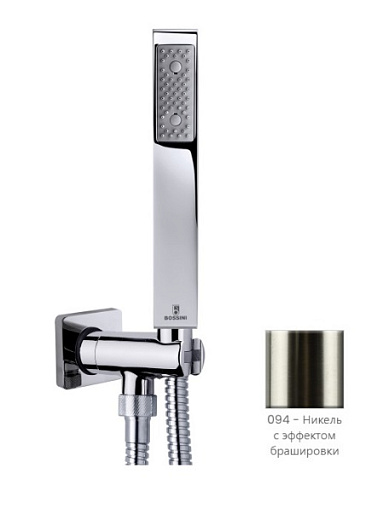 Cube, душевая лейка, 1 режим ручной лейки, никель, шланг в комплекте, для встр. смесителя, арт. CB4004C.094, Bossini
