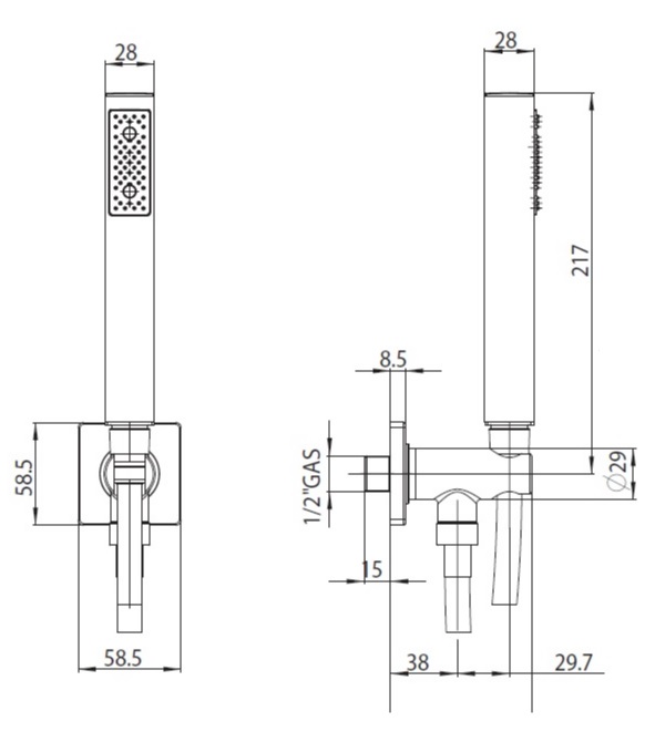 -В комплект входят: ручной душ, шланговое подсоединение с фиксированным держателем и шланг в оплётке из латуни двойного фальцевания длиной 150 см