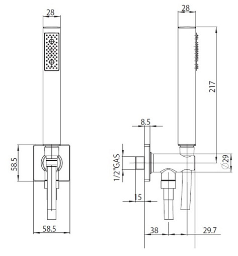 -В комплект входят: ручной душ, шланговое подсоединение с фиксированным держателем и шланг в оплётке из латуни двойного фальцевания длиной 150 см