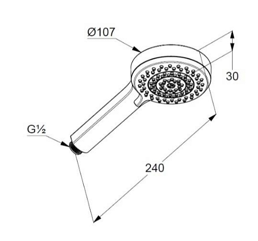 Душевая лейка Dive матовый, d 10,7см, 3 режима ручной лейки, чёрный цвет, без шланга, Kludi