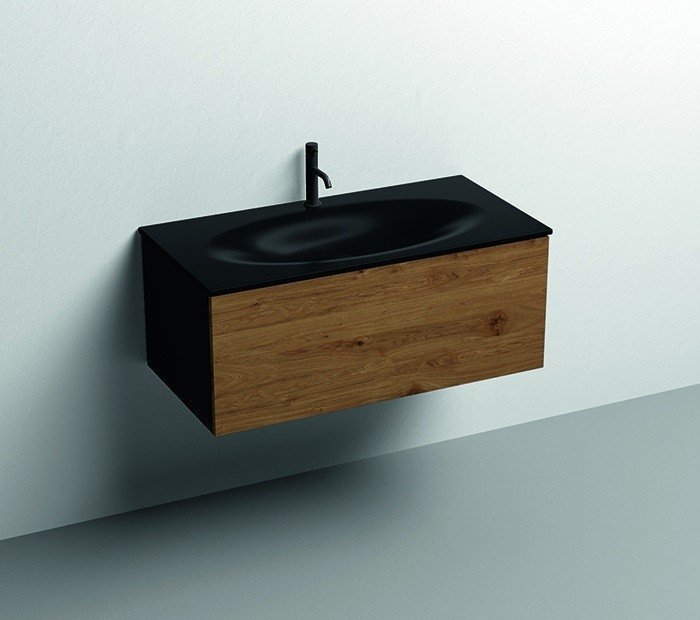 аковина для мебели, размер 1020*520*135 мм, с 1 отверстием под смеситель, цвет черный матовый.