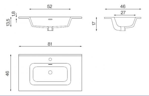VOLTERRA 81х46см, мебельная раковина, арт. EV.081.C, Nofer