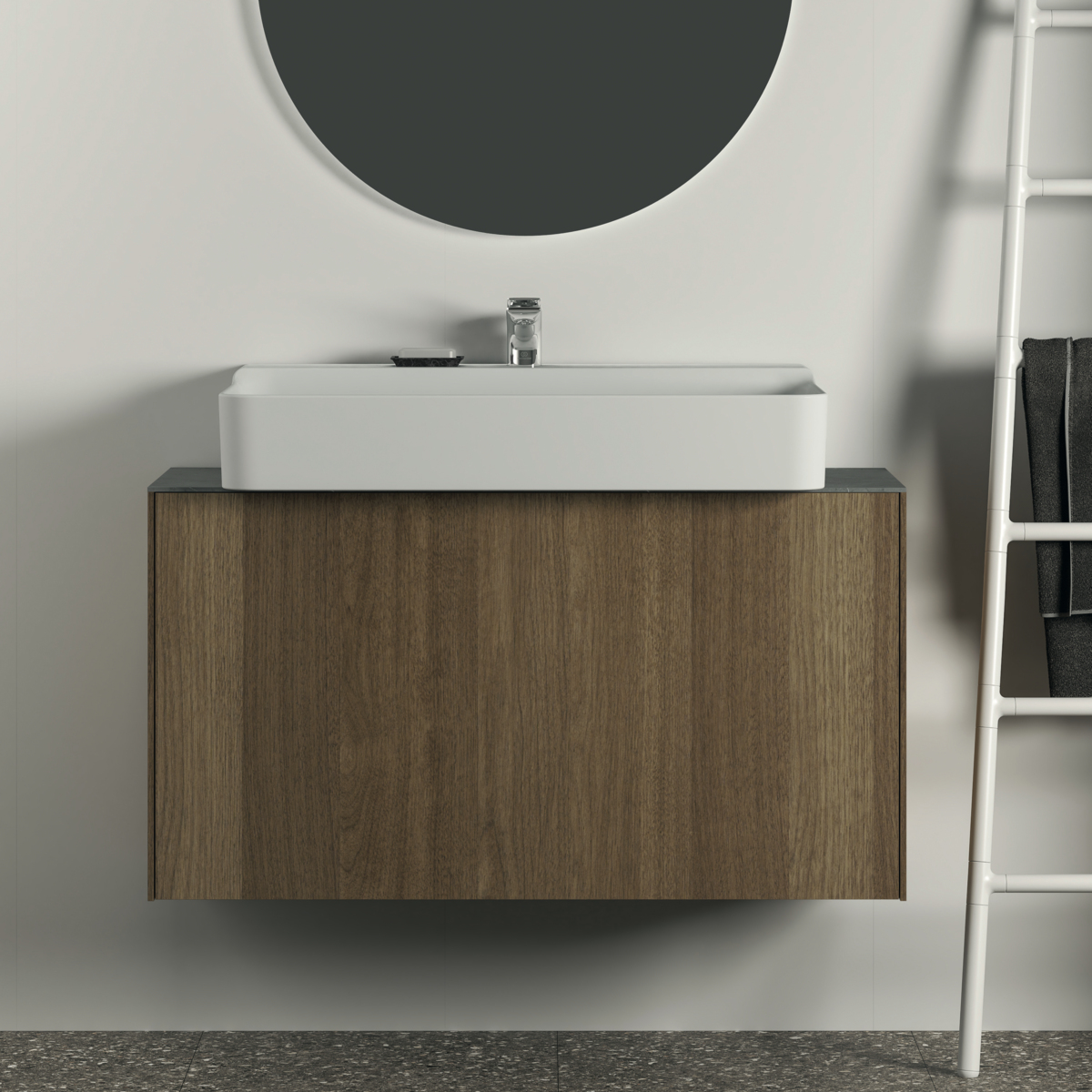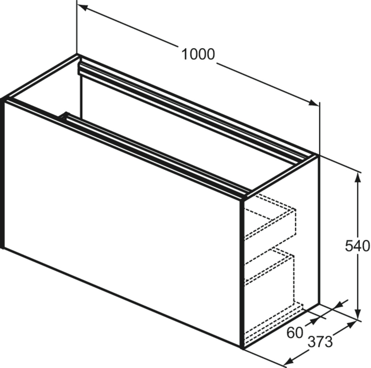 CONCA Тумба 100 см для раковины, узкая проекция 37 см, без столешницы. Комбинированная система для удобного использования (открытие "Push to open" + закрытие "Soft close"). Внутренняя отделка ящиков цвета антрацит. 1 внешний и 1 внутренний ящик. Для монтажа со столешницей из литьевого мрамора (без выреза / вырез под заказ) 100 см T4346.