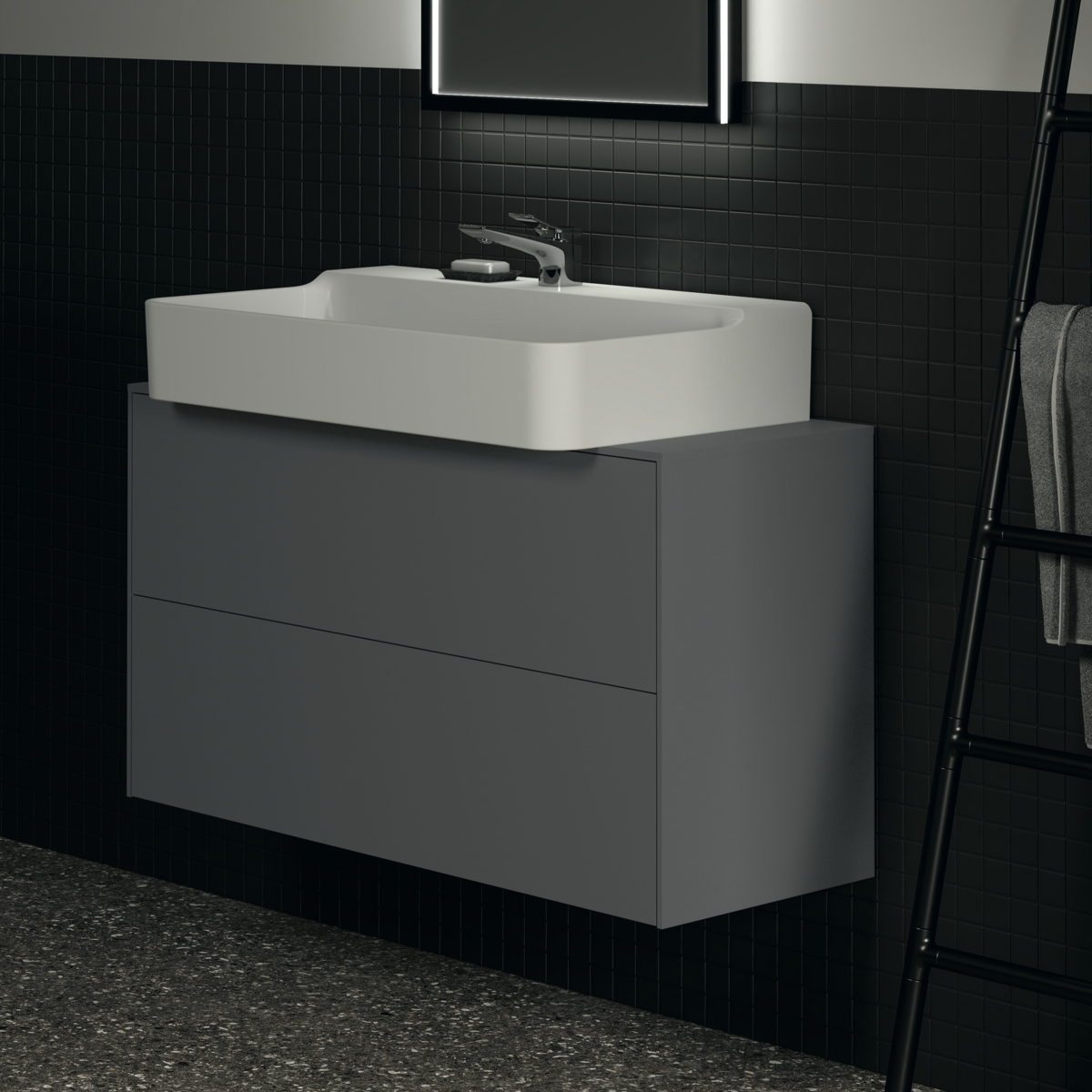 Модуль под раковину Conca 100х37,3х55 см, 2 ящика, антрацит матовый, система push-to-open, Ideal Standard