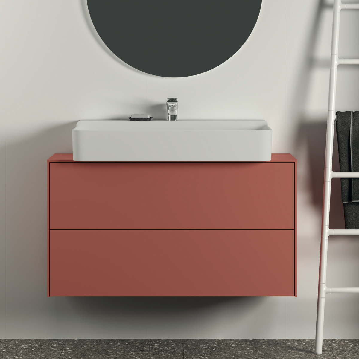 CONCA Тумба 100 см для раковины, узкая проекция 37 см, центральный вырез в столешнице. Комбинированная система для удобного использования (открытие "Push to open" + закрытие "Soft close"). Внутренняя отделка ящиков цвета антрацит. 2 внешних ящика. Для монтажа с раковинами Conca 40/50/60/80 см (с шлифованной нижней поверхностью) или Conca vessel 45/60 см или Extra 45/50/60/70/80 см (с шлифованной нижней поверхностью) или Extra vessel 50/60 см или Ipalyss vessel 40/55/60/65/80 см или Linda-X 50/60/75 см (с шлифованной нижней поверхностью)