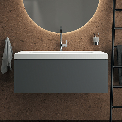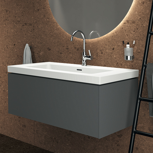 CONCA Тумба 100 см для раковины, без столешницы. Комбинированная система для удобного использования (открытие "Push to open" + закрытие "Soft close"). Внутренняя отделка ящиков цвета антрацит. 1 внешний ящик. Для монтажа с раковиной Extra Vanity 101 см или Solos Vanity 101,5 см или I.Life B Vanity 101 см