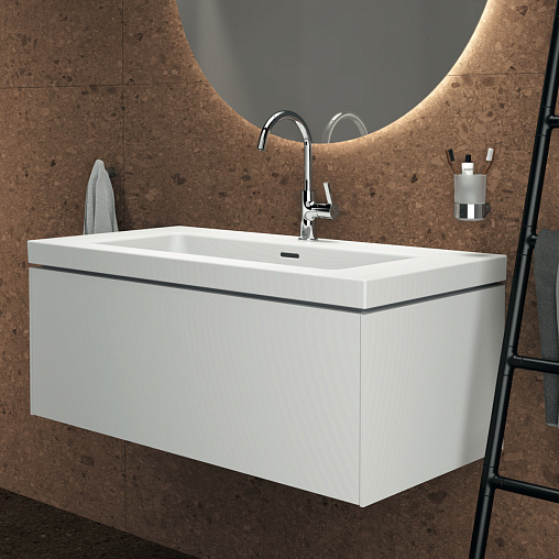 CONCA Тумба 100 см для раковины, без столешницы. Комбинированная система для удобного использования (открытие "Push to open" + закрытие "Soft close"). Внутренняя отделка ящиков цвета антрацит. 1 внешний ящик. Для монтажа с раковиной Extra Vanity 101 см или Solos Vanity 101,5 см или I.Life B Vanity 101 см