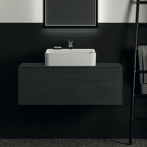CONCA Тумба 100 см для раковины, центральный вырез в столешнице. Комбинированная система для удобного использования (открытие "Push to open" + закрытие "Soft close"). Внутренняя отделка ящиков цвета антрацит. 1 ящик. Рекомендуется сифон Space Saving EE23033967 (заказывается дополнительно). Для монтажа с раковинами Conca 40/50/60/80 см (с шлифованной нижней поверхностью) или Conca vessel 45/60 см или Extra 45/50/60/70/80 см (с шлифованной нижней поверхностью) или Extra vessel 50/60 см или Ipalyss vessel 40/55/60/65/80 см или Linda-X 50/60/75 см (с шлифованной нижней поверхностью)