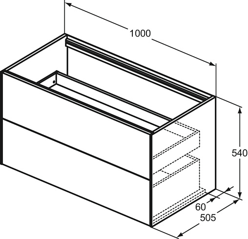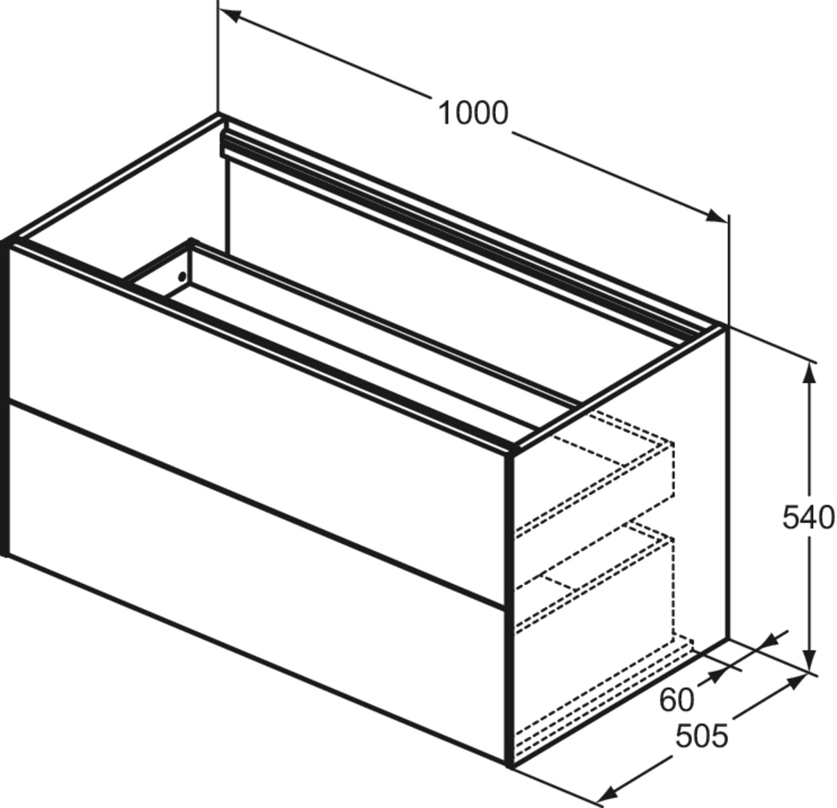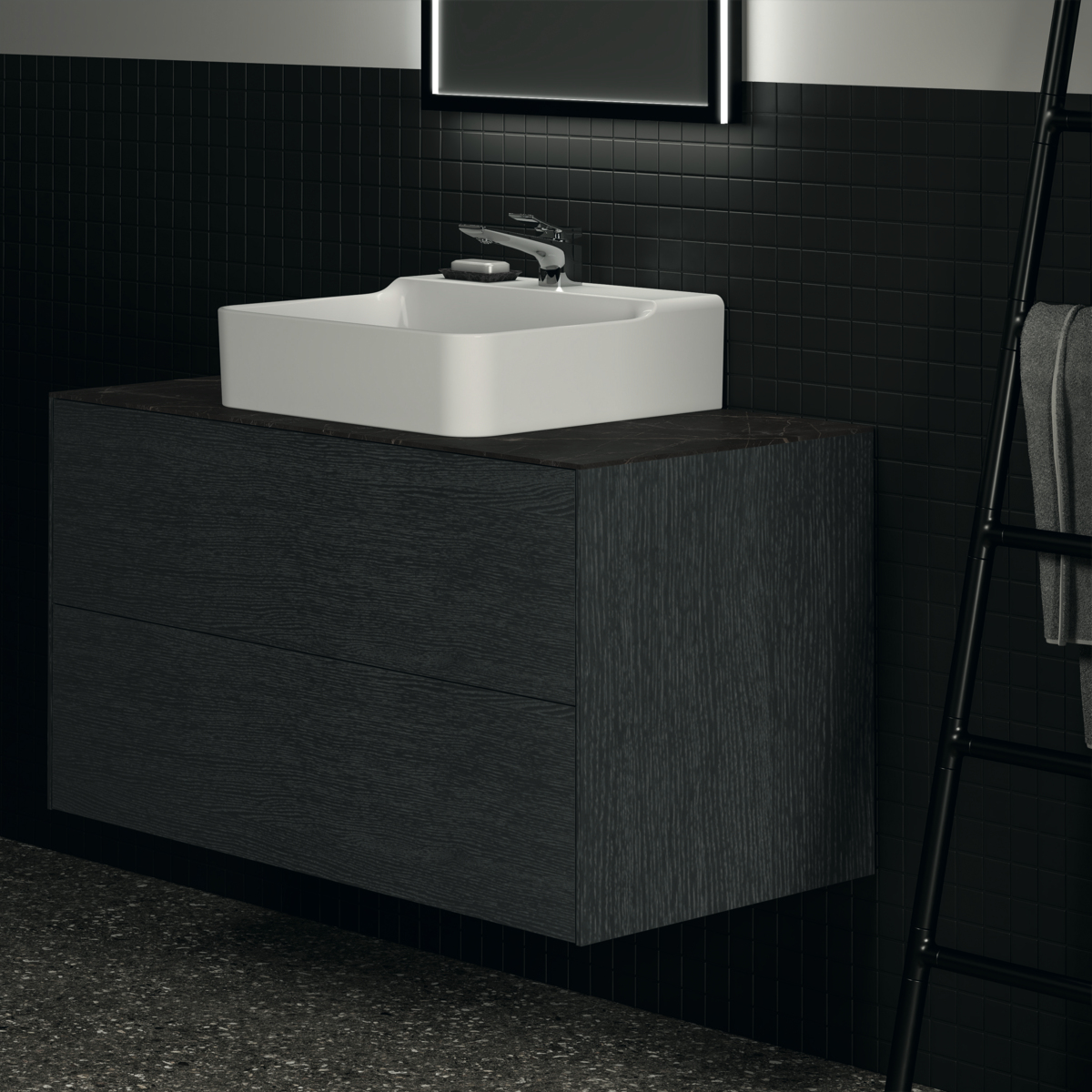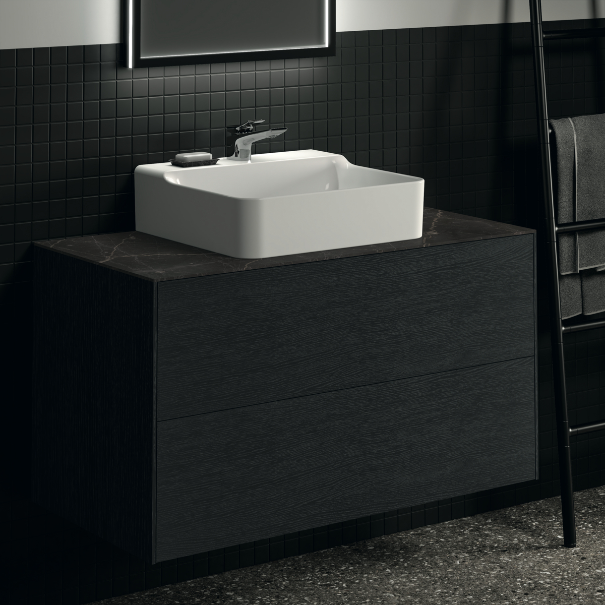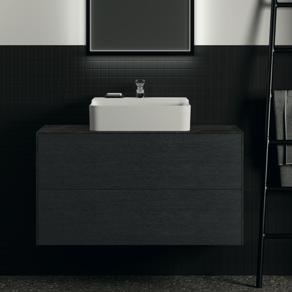 CONCA Тумба 100 см для раковины, без столешницы. Комбинированная система для удобного использования (открытие "Push to open" + закрытие "Soft close"). Внутренняя отделка ящиков цвета антрацит. 2 ящика. Для монтажа со столешницей из литьевого мрамора (без выреза / вырез под заказ) 100 см T3971.