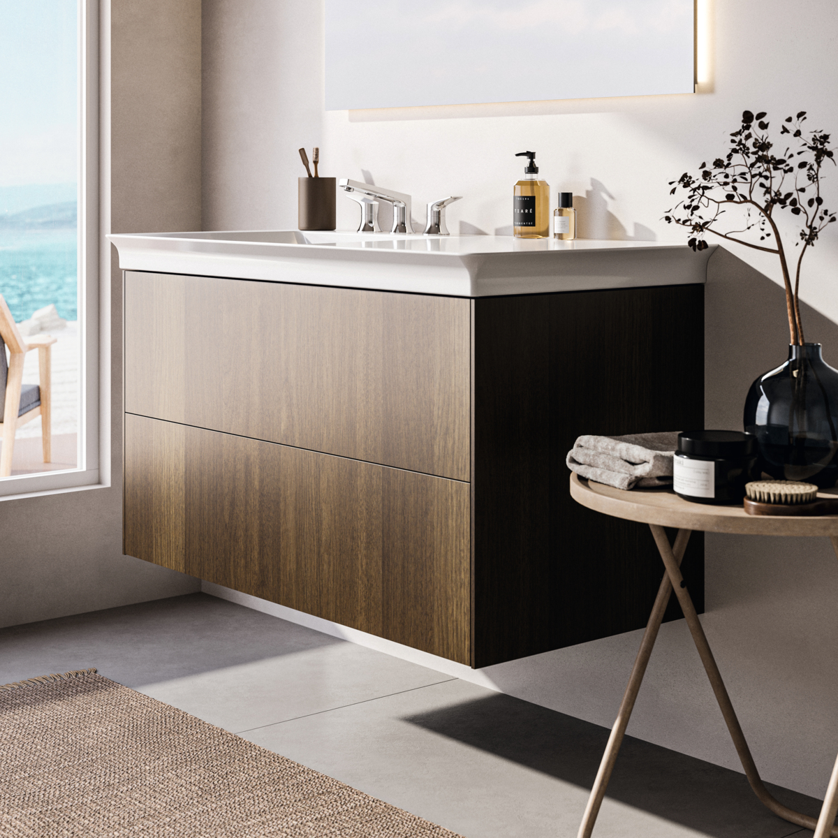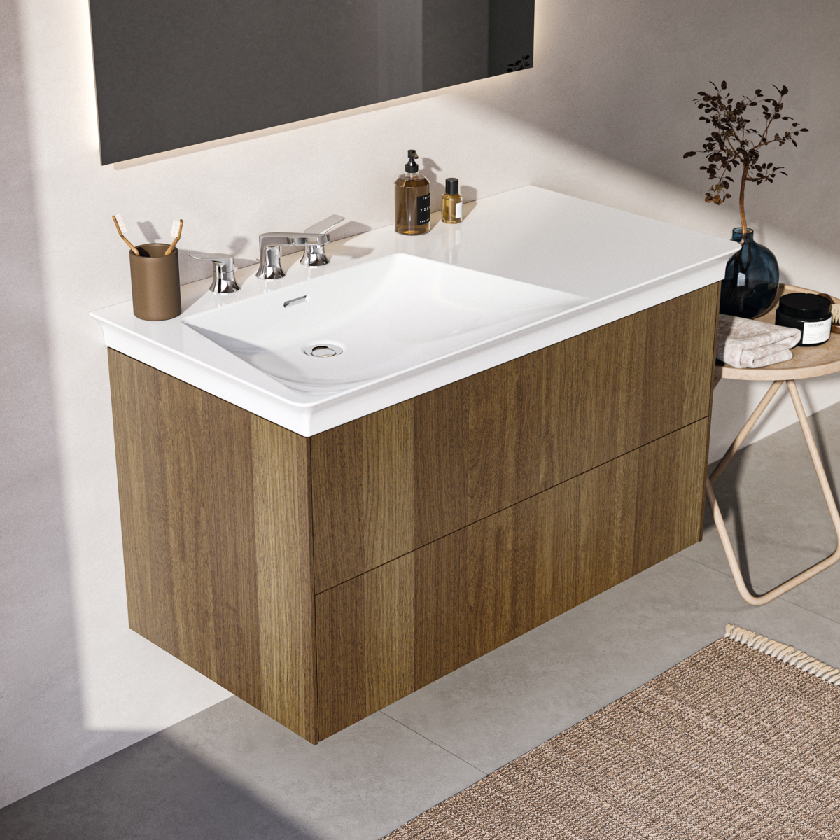 Модуль под раковину Conca 100х50,5х55 см, темный орех, левый, система push-to-open, Ideal Standard
