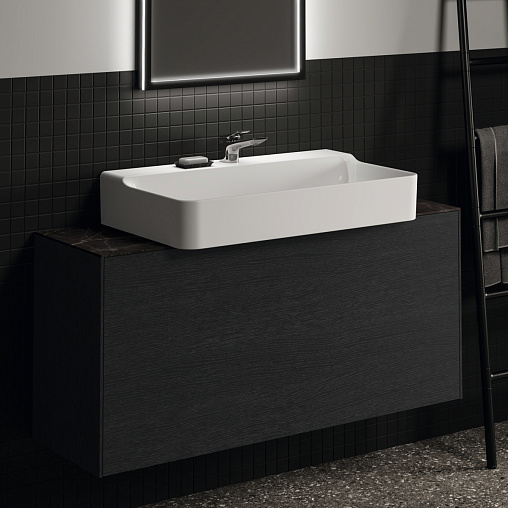 CONCA Тумба 120 см для раковины, узкая проекция 37 см, без столешницы. Комбинированная система для удобного использования (открытие "Push to open" + закрытие "Soft close"). Внутренняя отделка ящиков цвета антрацит. 1 внешний и 1 внутренний ящик. Для монтажа со столешницей из литьевого мрамора (без выреза / вырез под заказ) 120 см T4347. Рекомендуется сифон Space Saving EE23033967 (заказывается дополнительно)
