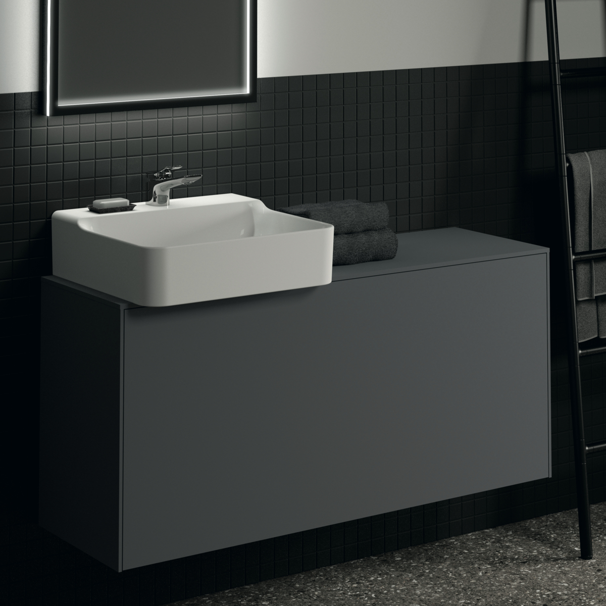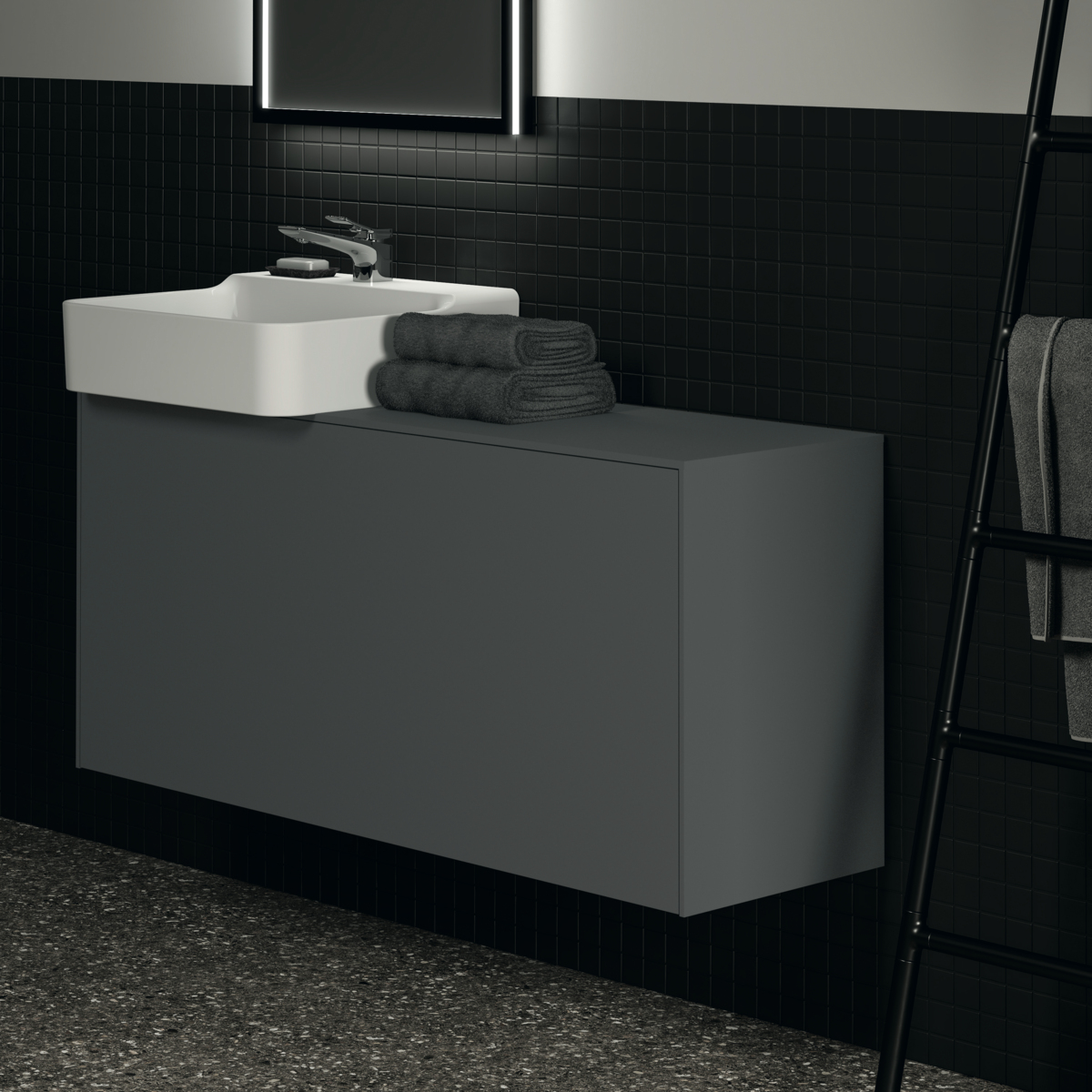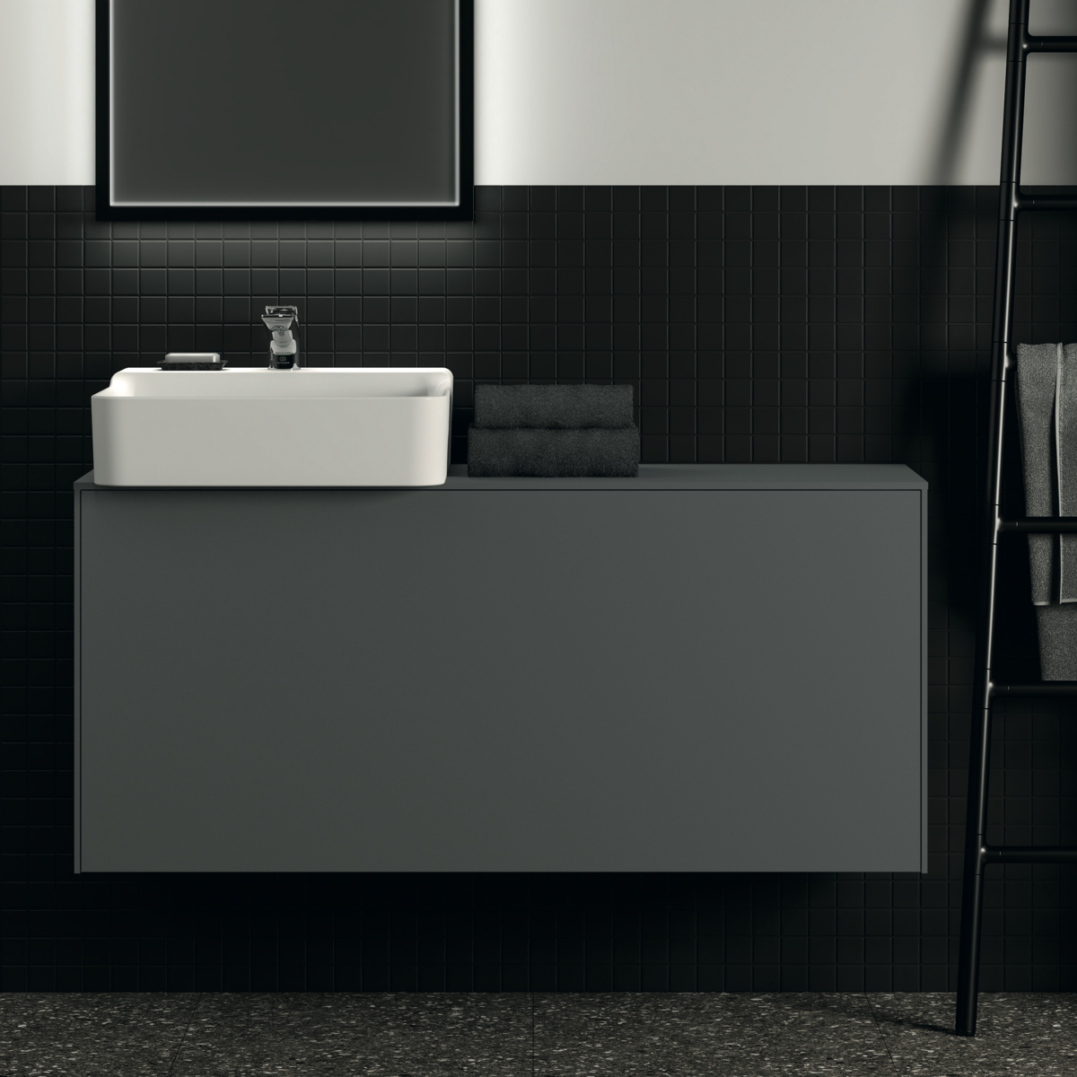 Модуль под раковину Conca 120х37,3х55 см, 1 ящик, вырез в столешнице под заказ, антрацит матовый, система push-to-open, Ideal Standard