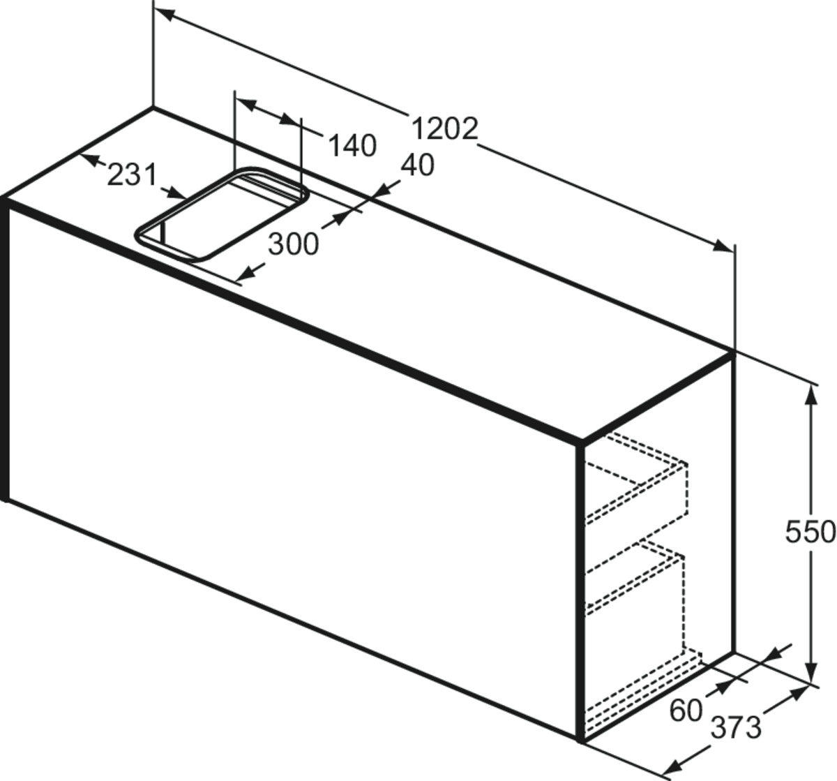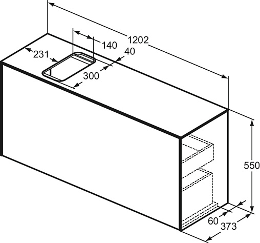 Модуль под раковину Conca 120х37,3х55 см, 1 ящик, вырез в столешнице под заказ, копченый дуб, система push-to-open, Ideal Standard