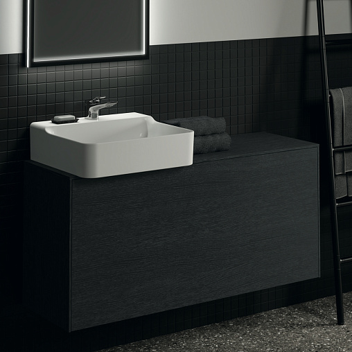 CONCA Тумба 120 см для раковины, узкая проекция 37 см (вырез в столешнице под заказ). Комбинированная система для удобного использования (открытие "Push to open" + закрытие "Soft close"). Внутренняя отделка ящиков цвета антрацит. 1 внешний и 1 внутренний ящик. Рекомендуется сифон Space Saving EE23033967 (заказывается дополнительно)