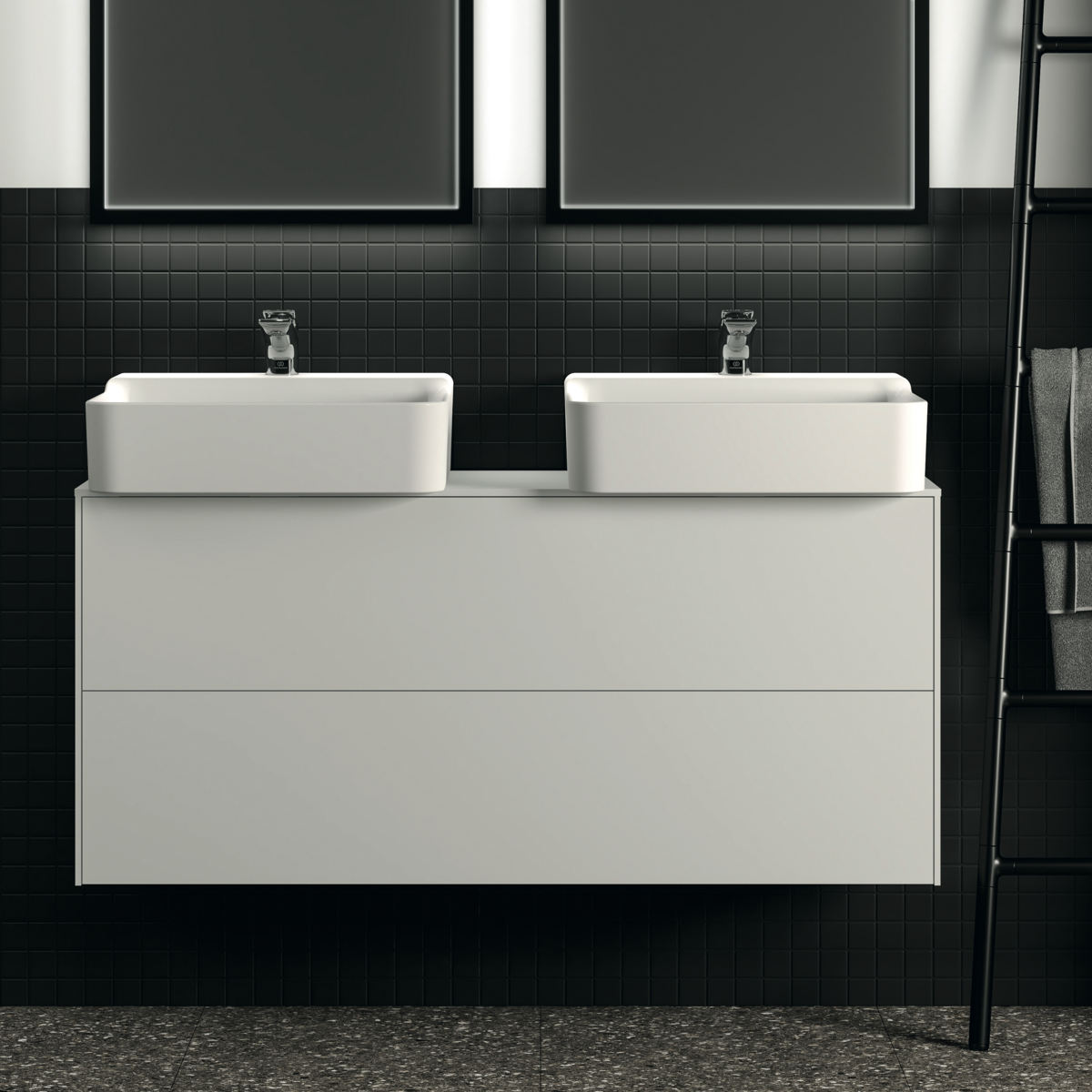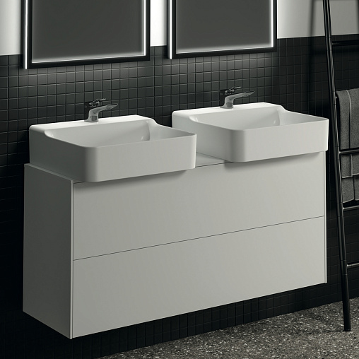 Модуль под раковину Conca 120х37,3х55 см, 2 ящика, вырез в столешнице под заказ, белый матовый, система push-to-open, Ideal Standard