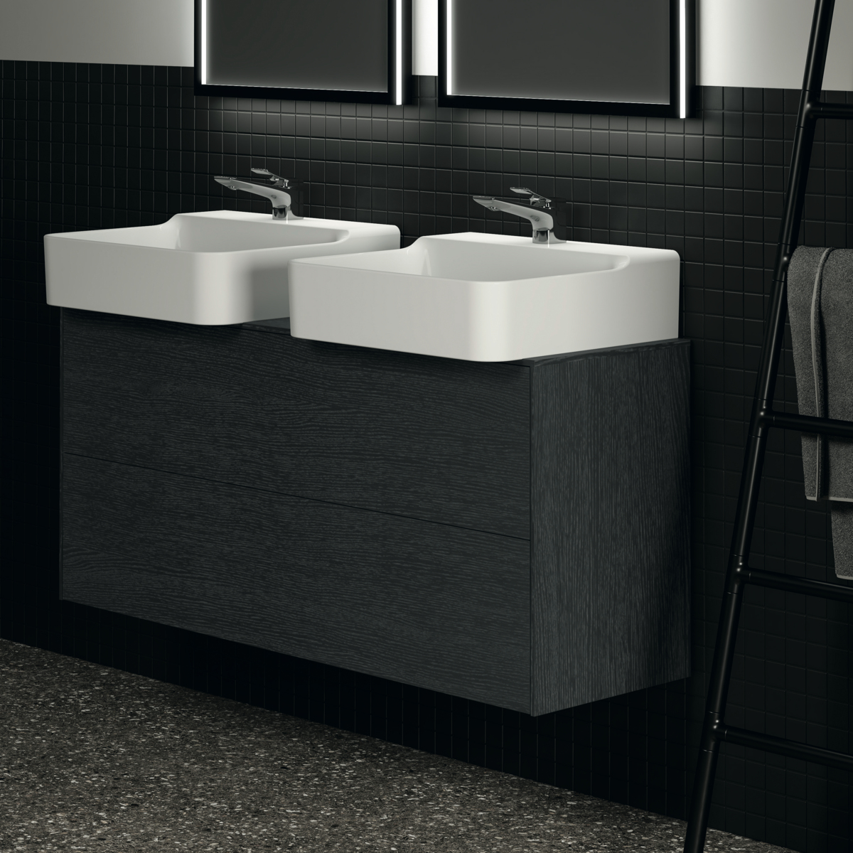 Модуль под раковину Conca 120х37,3х55 см, 2 ящика, вырез в столешнице под заказ, копченый дуб, система push-to-open, Ideal Standard