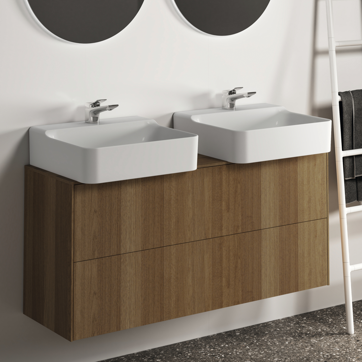 Модуль под раковину Conca 120х37,3х55 см, 2 ящика, вырез в столешнице под заказ, темный орех, система push-to-open, Ideal Standard