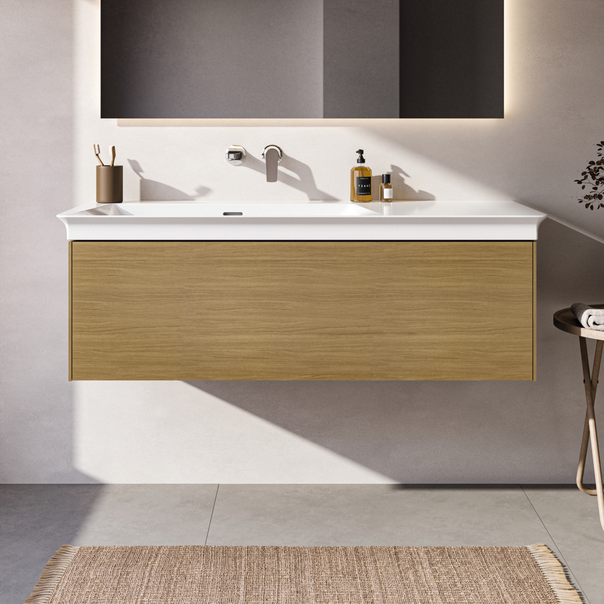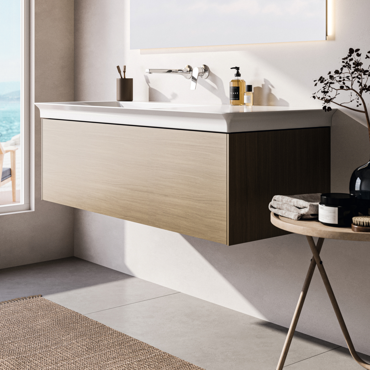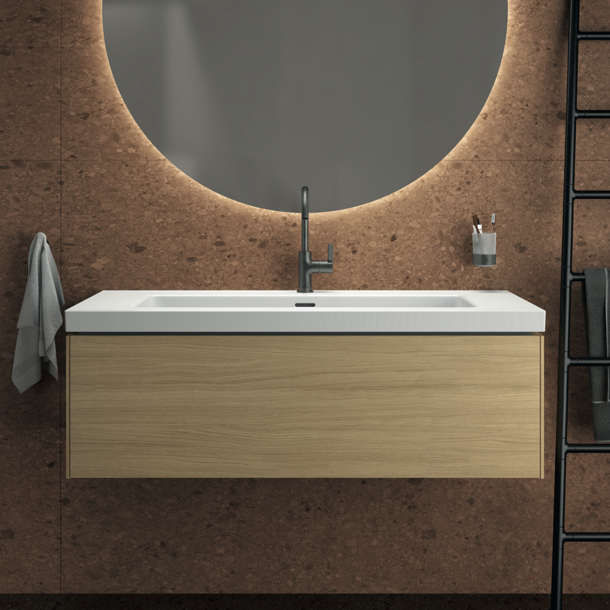 CONCA Тумба 120 см для раковины, без столешницы. Комбинированная система для удобного использования (открытие "Push to open" + закрытие "Soft close"). Внутренняя отделка ящиков цвета антрацит. 1 внешний ящик. Для монтажа с раковиной Extra Vanity 121 см или Solos Vanity 121,5 см