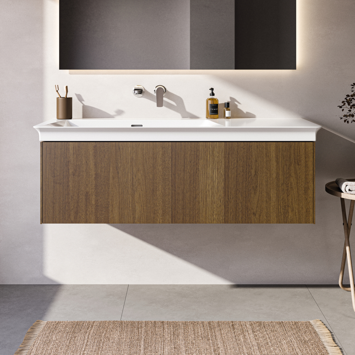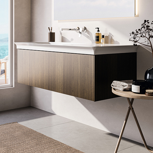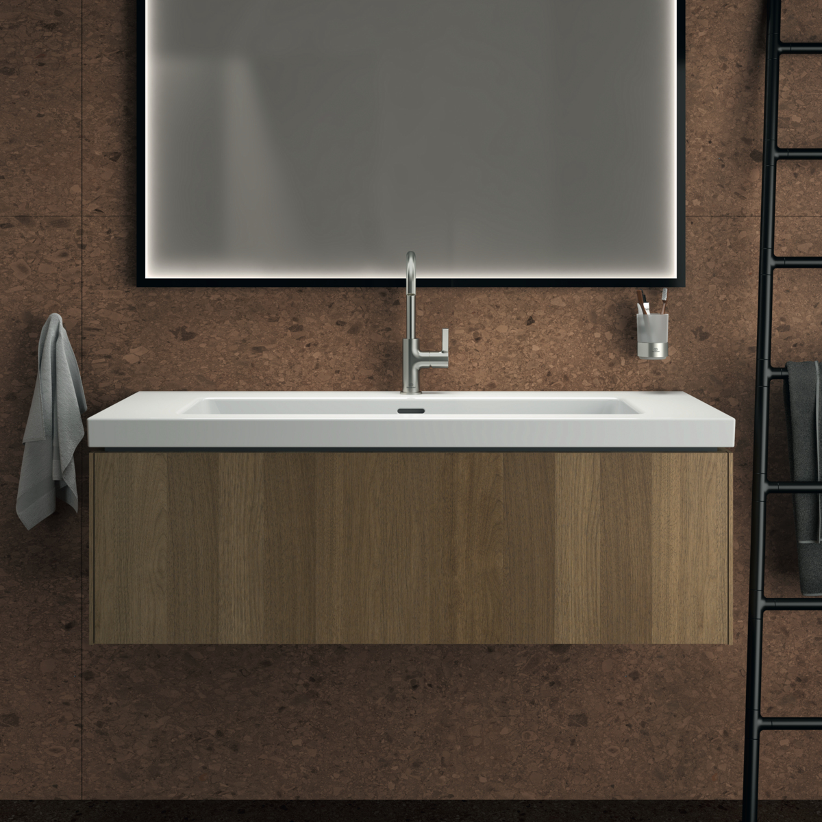 CONCA Тумба 120 см для раковины, без столешницы. Комбинированная система для удобного использования (открытие "Push to open" + закрытие "Soft close"). Внутренняя отделка ящиков цвета антрацит. 1 внешний ящик. Для монтажа с раковиной Extra Vanity 121 см или Solos Vanity 121,5 см