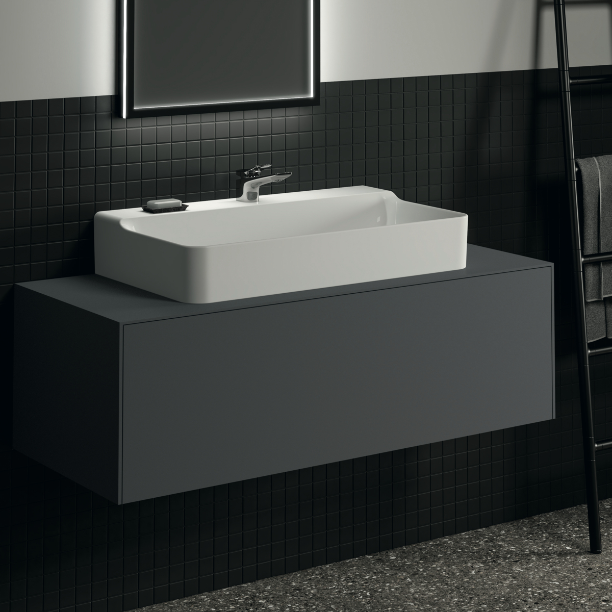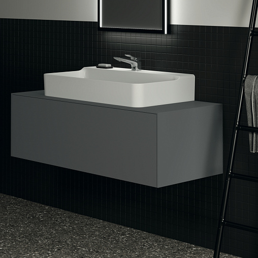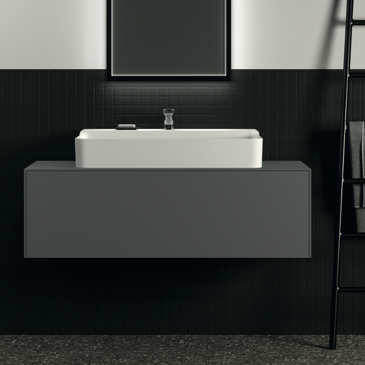 CONCA Тумба 120 см для раковины, центральный вырез в столешнице. Комбинированная система для удобного использования (открытие "Push to open" + закрытие "Soft close"). Внутренняя отделка ящиков цвета антрацит. 1 ящик. Рекомендуется сифон Space Saving EE23033967 (заказывается дополнительно). Для монтажа с раковинами Conca 40/50/60/80/100 см (с шлифованной нижней поверхностью) или Conca vessel 45/60 см или Extra 45/50/60/70/80/100 см (с шлифованной нижней поверхностью) или Extra vessel 50/60 см или Ipalyss vessel 40/55/60/65/80 см или Linda-X 50/60/75 см (с шлифованной нижней поверхностью)