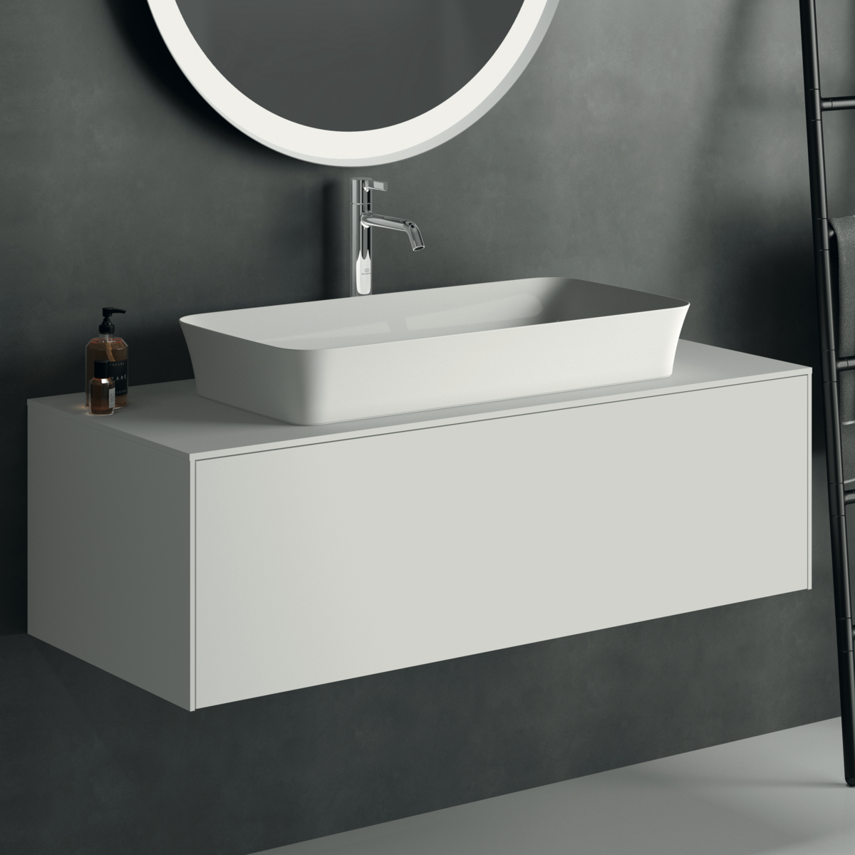 CONCA Тумба 120 см для раковины, центральный вырез в столешнице. Комбинированная система для удобного использования (открытие "Push to open" + закрытие "Soft close"). Внутренняя отделка ящиков цвета антрацит. 1 ящик. Рекомендуется сифон Space Saving EE23033967 (заказывается дополнительно). Для монтажа с раковинами Conca 40/50/60/80/100 см (с шлифованной нижней поверхностью) или Conca vessel 45/60 см или Extra 45/50/60/70/80/100 см (с шлифованной нижней поверхностью) или Extra vessel 50/60 см или Ipalyss vessel 40/55/60/65/80 см или Linda-X 50/60/75 см (с шлифованной нижней поверхностью)
