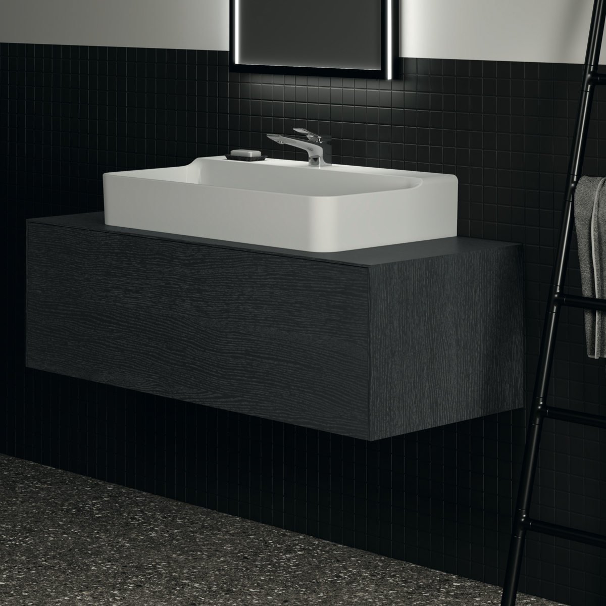 CONCA Тумба 120 см для раковины, центральный вырез в столешнице. Комбинированная система для удобного использования (открытие "Push to open" + закрытие "Soft close"). Внутренняя отделка ящиков цвета антрацит. 1 ящик. Рекомендуется сифон Space Saving EE23033967 (заказывается дополнительно). Для монтажа с раковинами Conca 40/50/60/80/100 см (с шлифованной нижней поверхностью) или Conca vessel 45/60 см или Extra 45/50/60/70/80/100 см (с шлифованной нижней поверхностью) или Extra vessel 50/60 см или Ipalyss vessel 40/55/60/65/80 см или Linda-X 50/60/75 см (с шлифованной нижней поверхностью)