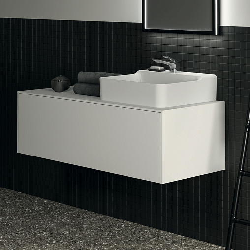 Модуль под раковину Conca 120х50,5х37 см, вырез в столешнице под заказ, белый матовый, система push-to-open, Ideal Standard