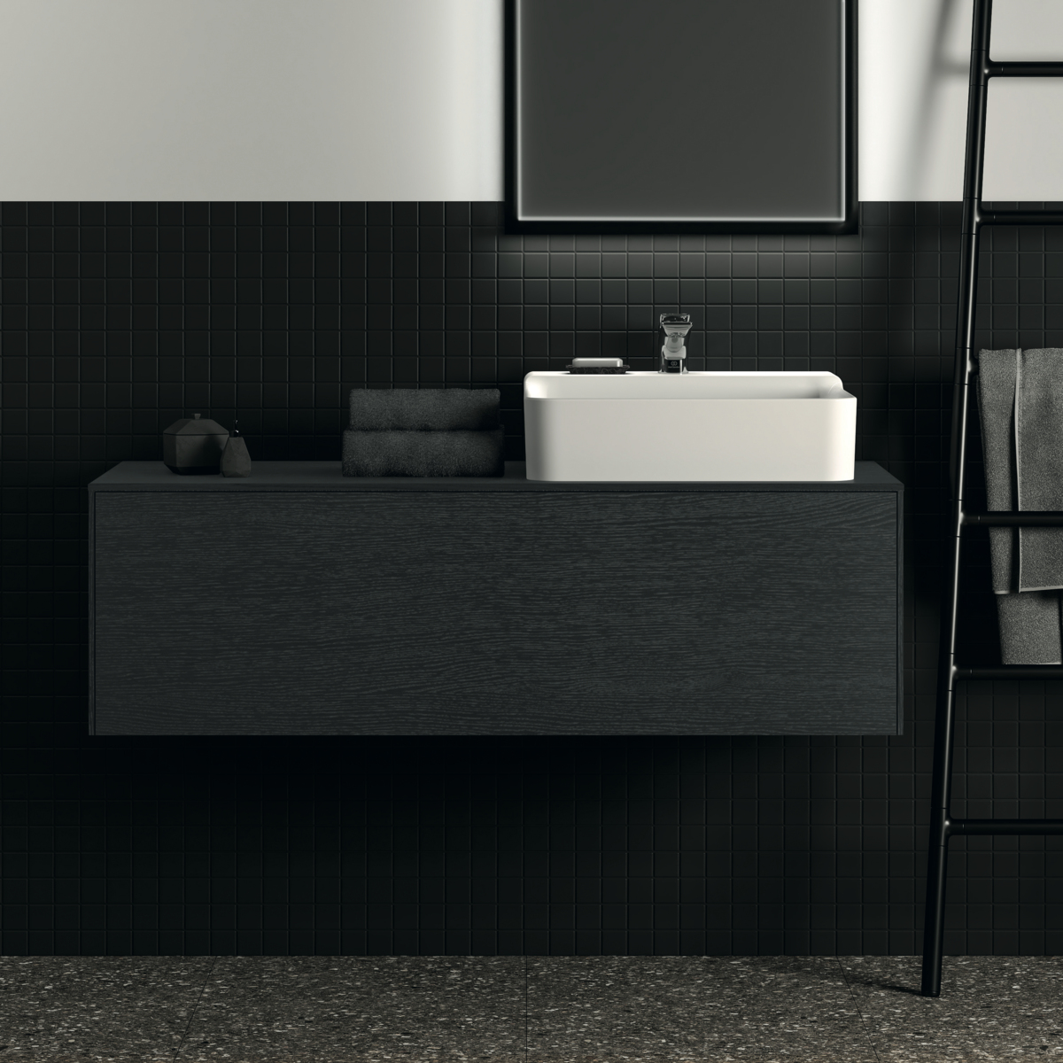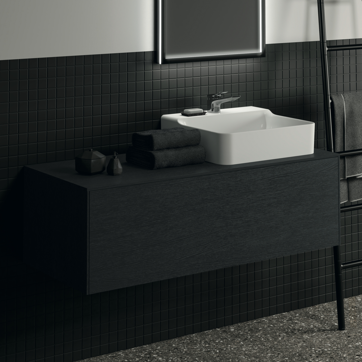 CONCA Тумба 120 см для раковины (вырез в столешнице под заказ). Комбинированная система для удобного использования (открытие "Push to open" + закрытие "Soft close"). Внутренняя отделка ящиков цвета антрацит. 1 ящик.