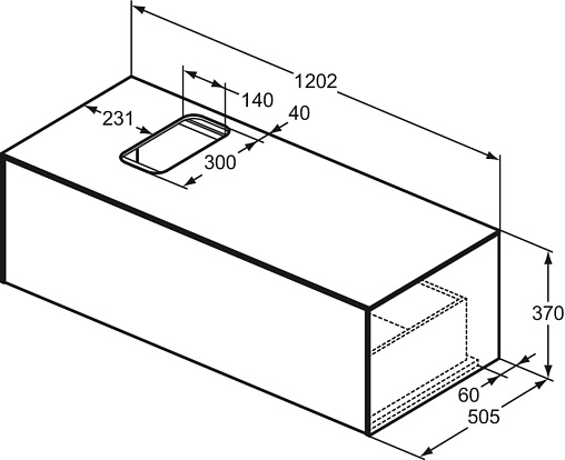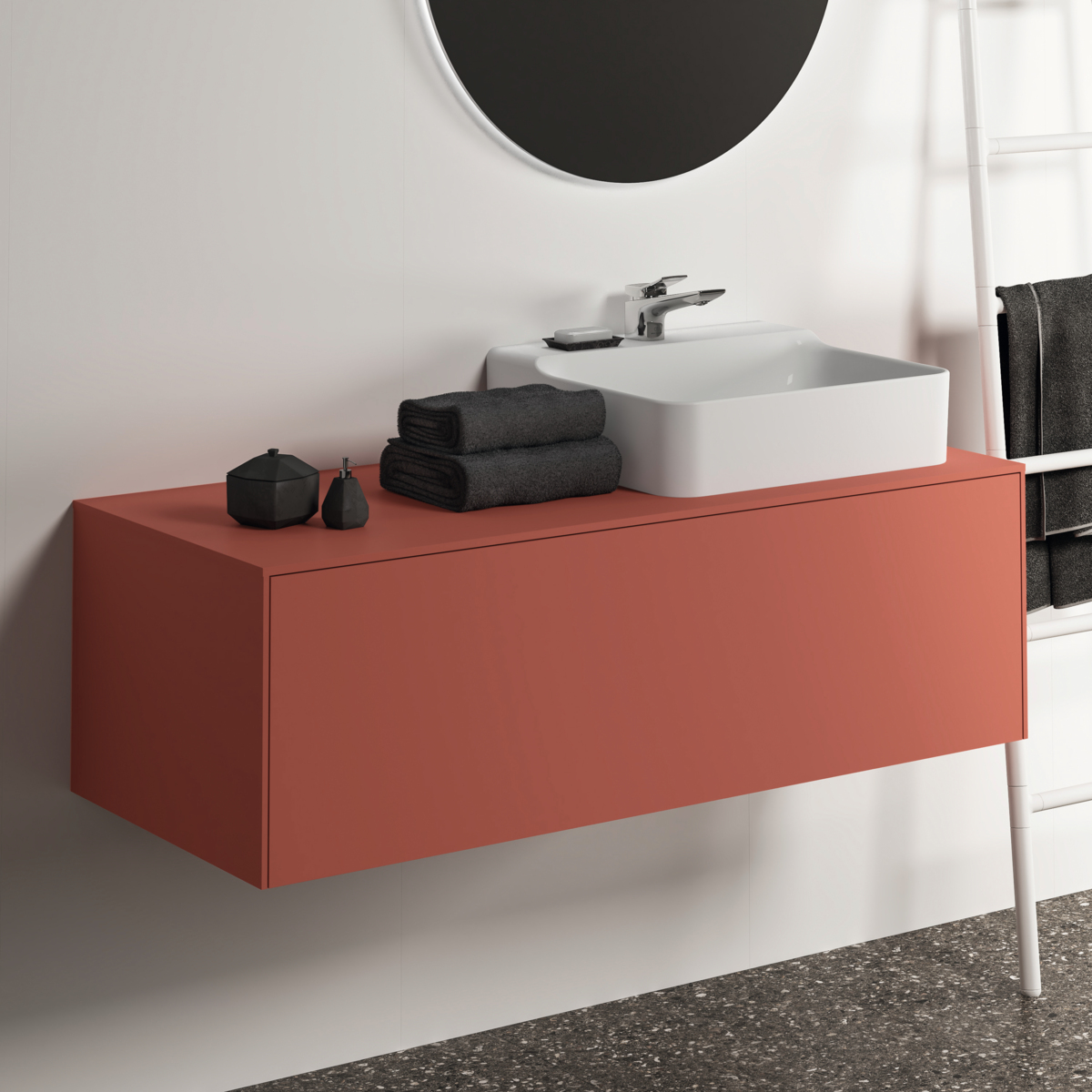 Модуль под раковину Conca 120х50,5х37 см, вырез в столешнице под заказ, матовый закат, система push-to-open, Ideal Standard