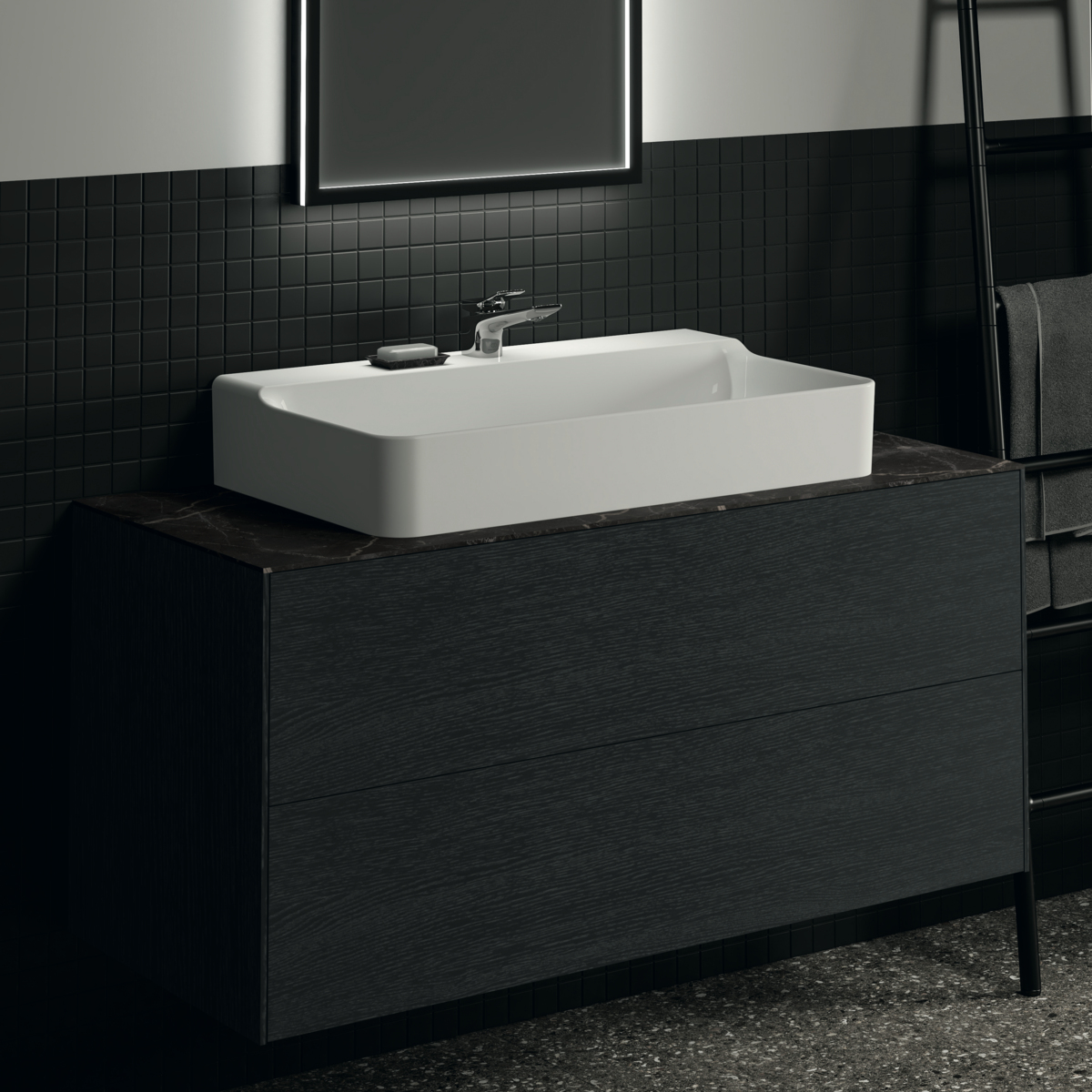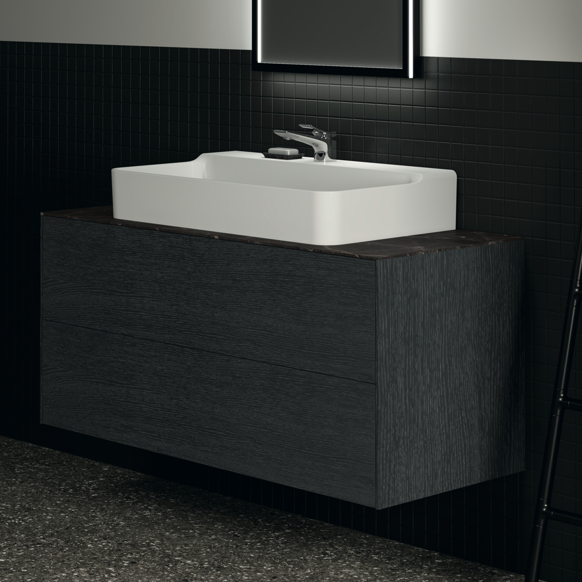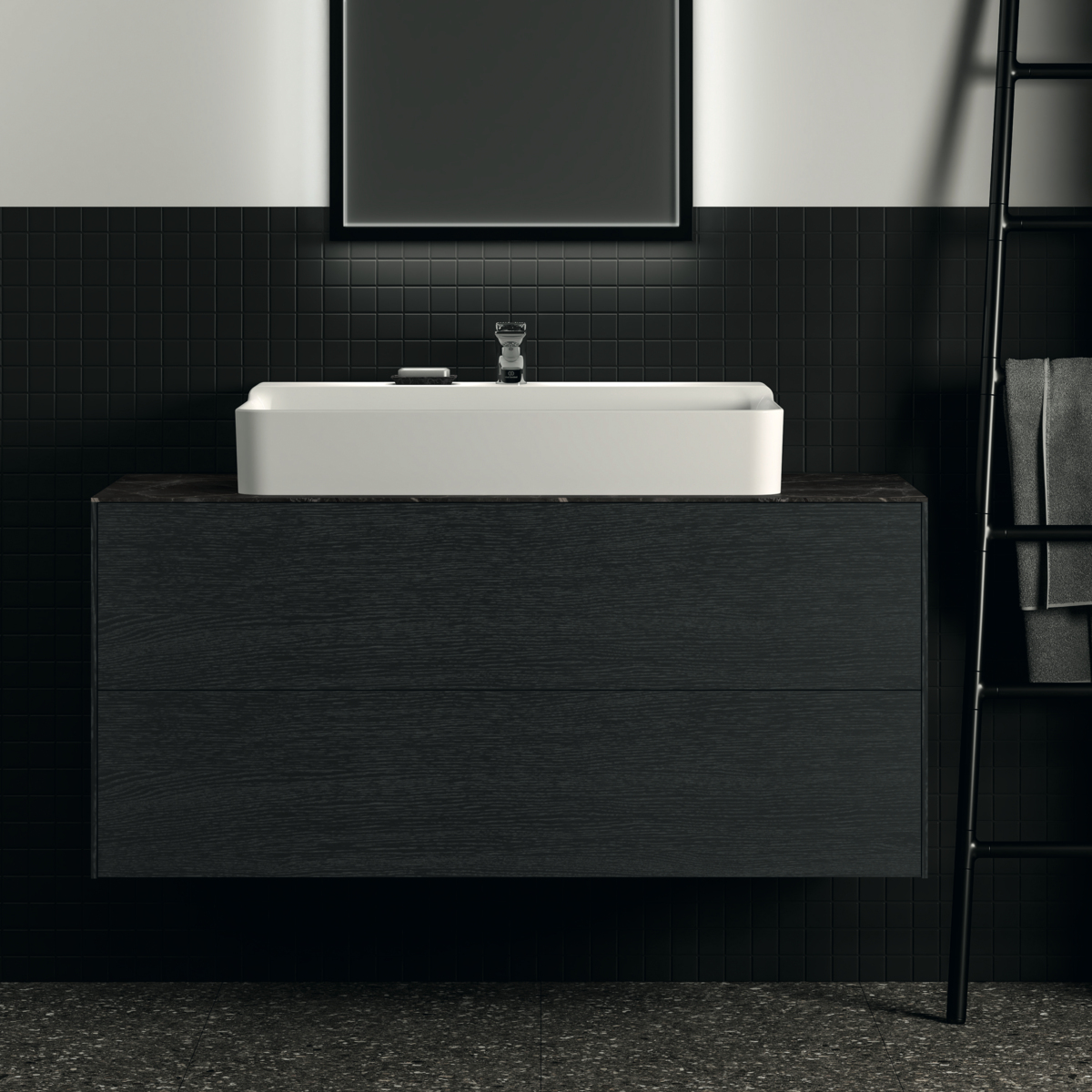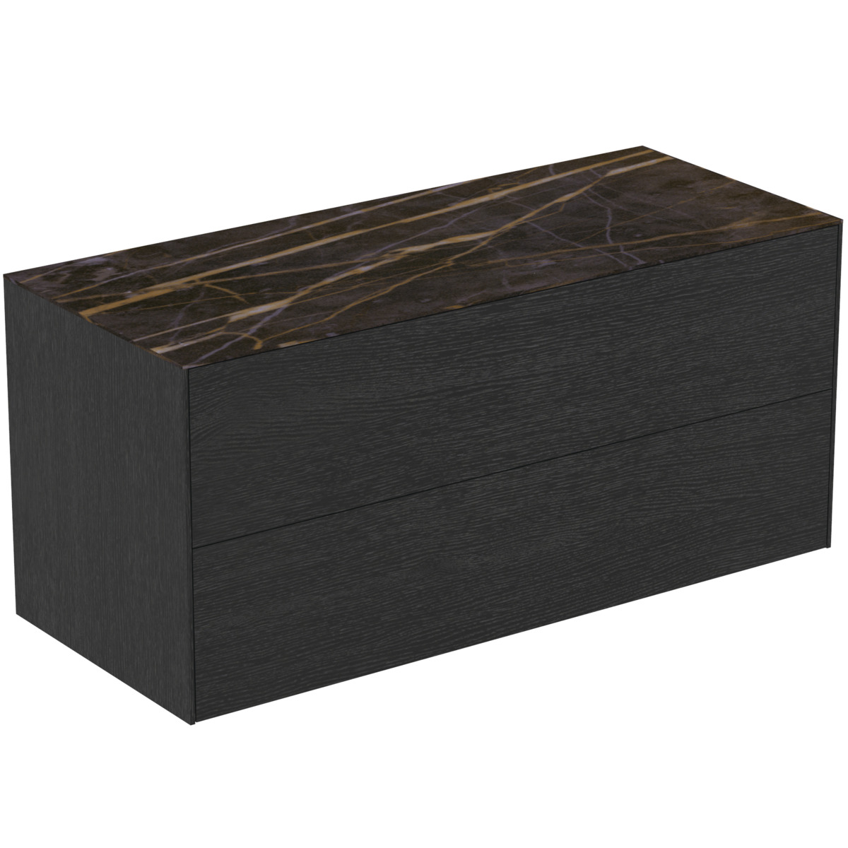 CONCA Тумба 120 см для раковины, без столешницы. Комбинированная система для удобного использования (открытие "Push to open" + закрытие "Soft close"). Внутренняя отделка ящиков цвета антрацит. 2 ящика. Для монтажа со столешницей из литьевого мрамора (без выреза / вырез под заказ) 120 см T3972.