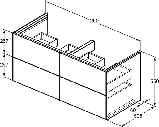CONCA Тумба без столешницы 120х50 см, комбинированная система для удобного использования (открытие "Push to open" + закрытие "Soft close"). Внутренняя отделка ящиков цвета антрацит. 4 ящика. Для монтажа с раковиной i.Life B Vanity 121 см T4602