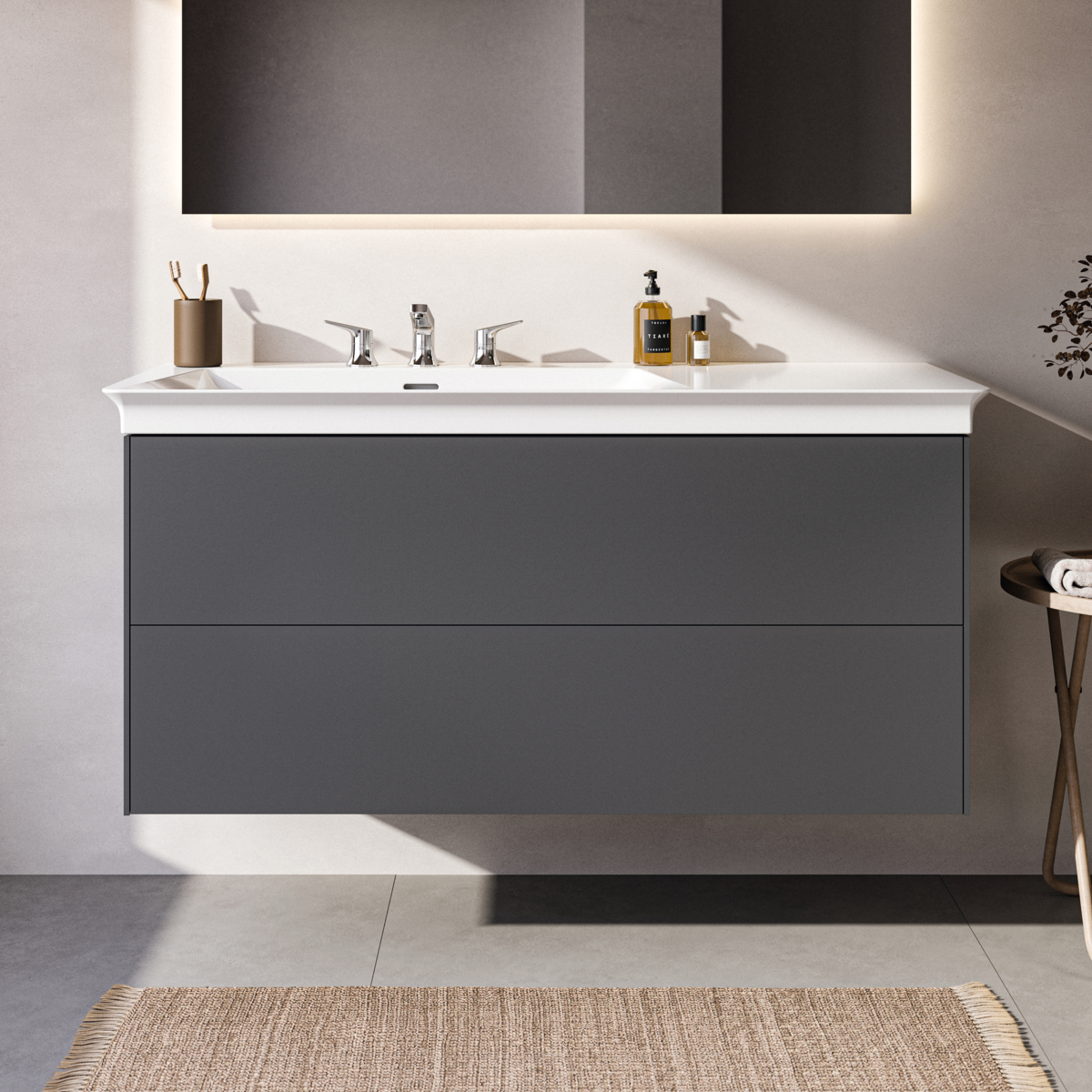 CONCA Асимметричная тумба без столешницы 120х50 см, левая версия, комбинированная система для удобного использования (открытие "Push to open" + закрытие "Soft close"). Внутренняя отделка ящиков цвета антрацит. 2 ящика. Для монтажа с раковинами La Dolce Vita Asymmetrical Left 126 см E2632, E2706, E2696