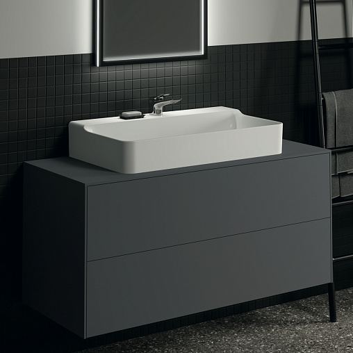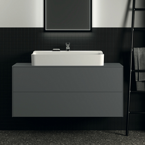 CONCA Тумба 120 см для раковины, центральный вырез в столешнице. Комбинированная система для удобного использования (открытие "Push to open" + закрытие "Soft close"). Внутренняя отделка ящиков цвета антрацит. 2 ящика. Для монтажа с раковинами Conca 40/50/60/80/100 см (с шлифованной нижней поверхностью) или Conca vessel 45/60 см или Extra 45/50/60/70/80/100 см (с шлифованной нижней поверхностью) или Extra vessel 50/60 см или Ipalyss vessel 40/55/60/65/80 см или Linda-X 50/60/75 см (с шлифованной нижней поверхностью)
