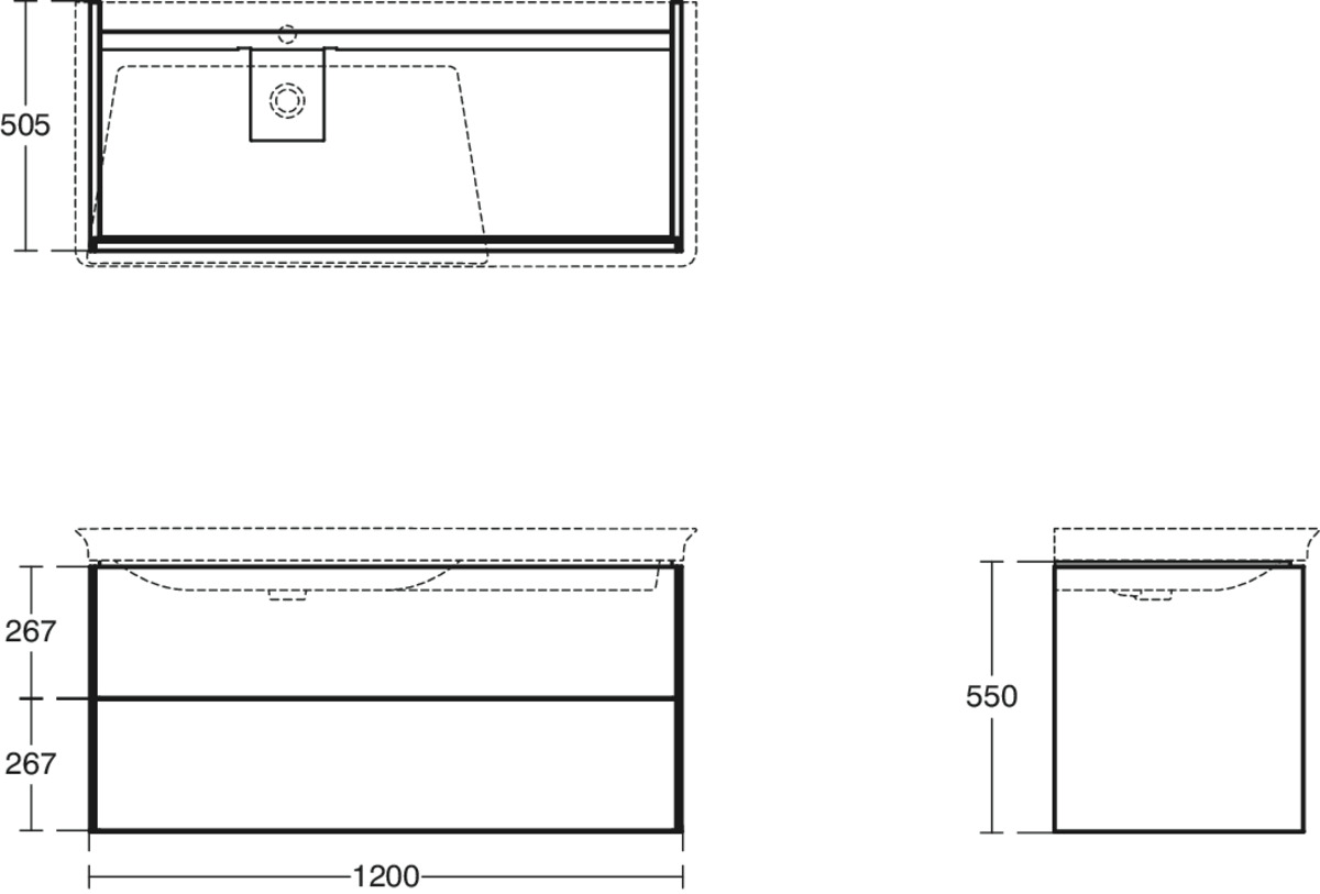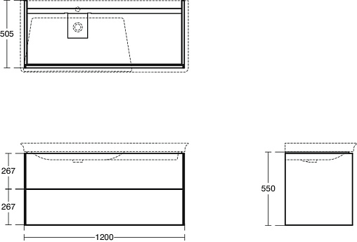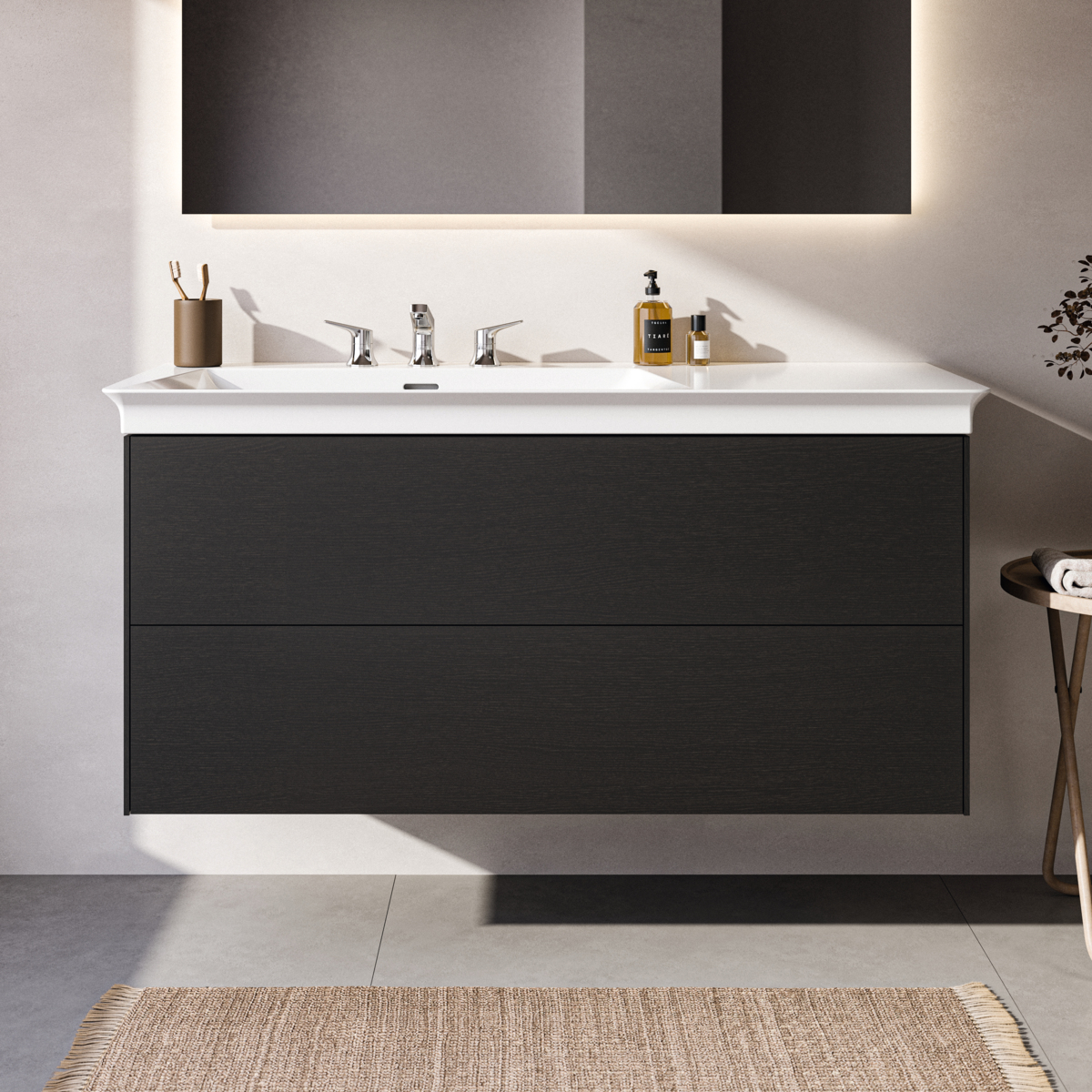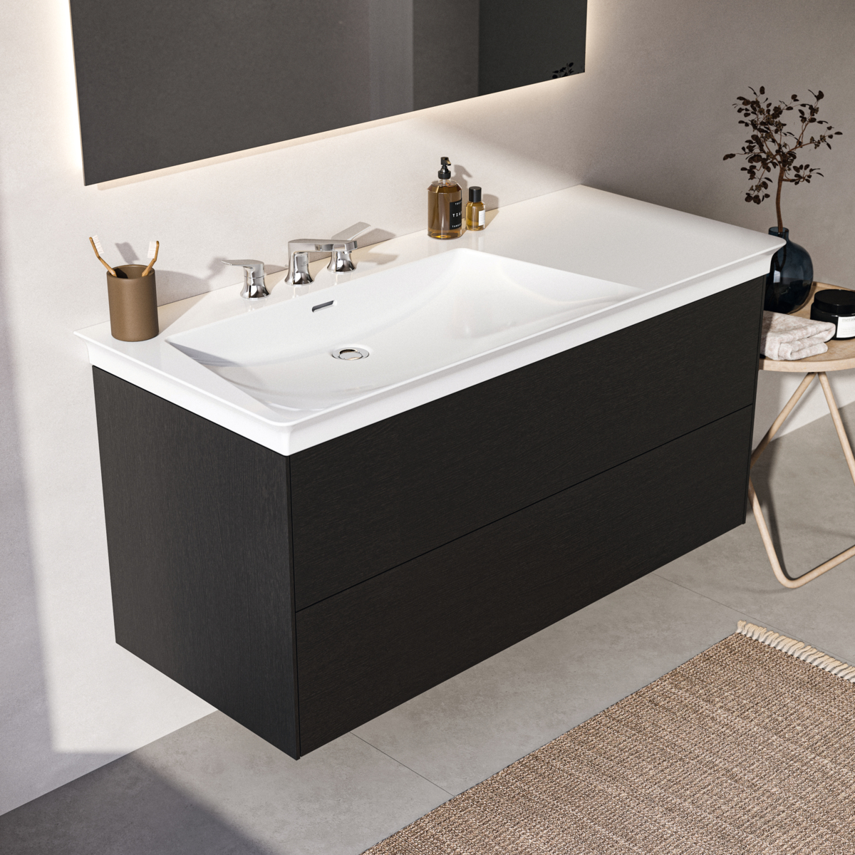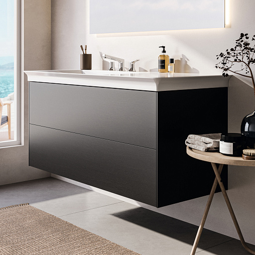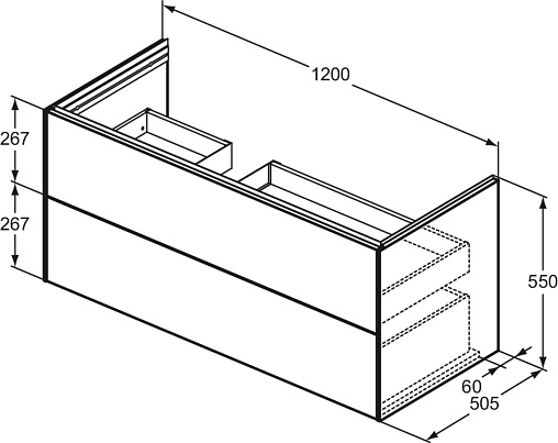 CONCA Асимметричная тумба без столешницы 120х50 см, левая версия, комбинированная система для удобного использования (открытие "Push to open" + закрытие "Soft close"). Внутренняя отделка ящиков цвета антрацит. 2 ящика. Для монтажа с раковинами La Dolce Vita Asymmetrical Left 126 см E2632, E2706, E2696